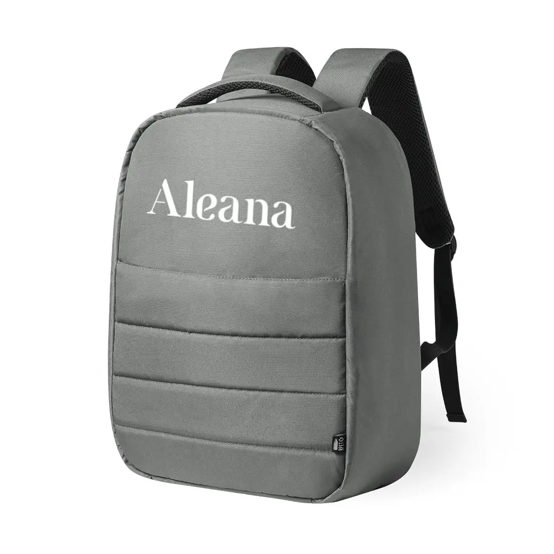Mochila antirrobo de línea nature fabricada en resistente RPET 300D, con diseño urbano y acolchado total. Con bolsillo antirrobo y accesorio para ajuste en trolley. Compartimentos interiores acolchados para ordenador portátil de hasta 15 pulgadas y tablets de hasta 12 pulgadas. Cintas de hombros y espalda acolchadas. Distintivo RPET en etiqueta.Elaborado a partir de plástico reciclado, para así fomentar la reutilización de residuos plásticos y ayudar a la sostenibilidad del planeta.