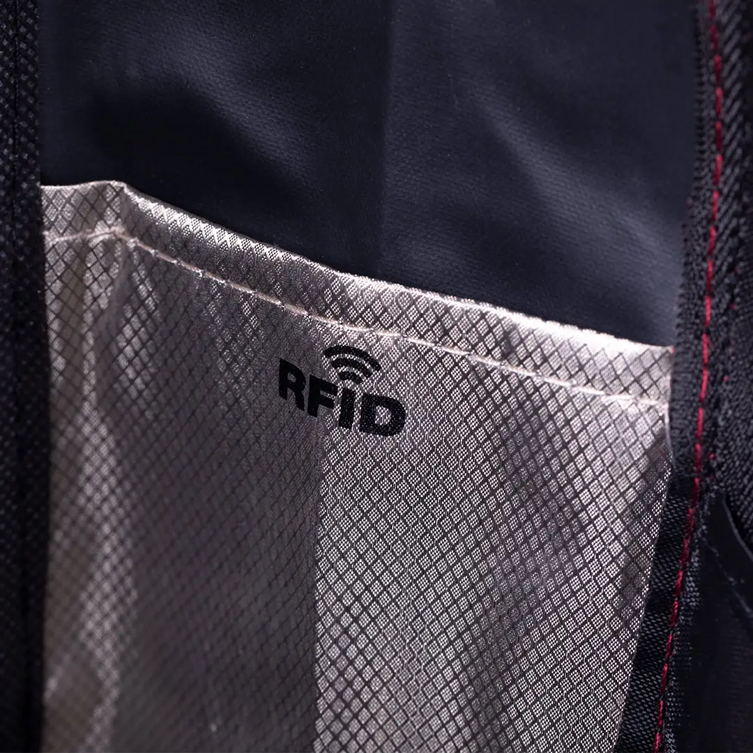Bolsillo Protector RFID. Conexión USB. Bolsillo Acolchado para Portátil y Tablet. Parte Trasera y Cintas Acolchadas