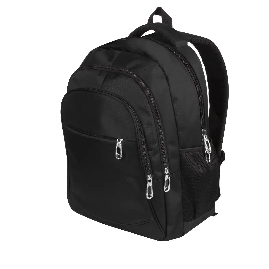 Mochila fabricada en resistente nylon 600D. De estilo actual, con 4 prácticos bolsillos exteriores de distintos tamaños, fáciles de abrir y cerrar, con cremalleras en color negro. Interior con compartimento acolchado para ordenador portátil de hasta 15 pulgadas, con dos compartimentos laterales de rejilla, elásticos y de fácil acceso. Cómoda de transportar gracias a sus asas acolchadas y su espalda con acolchado ergonómico.