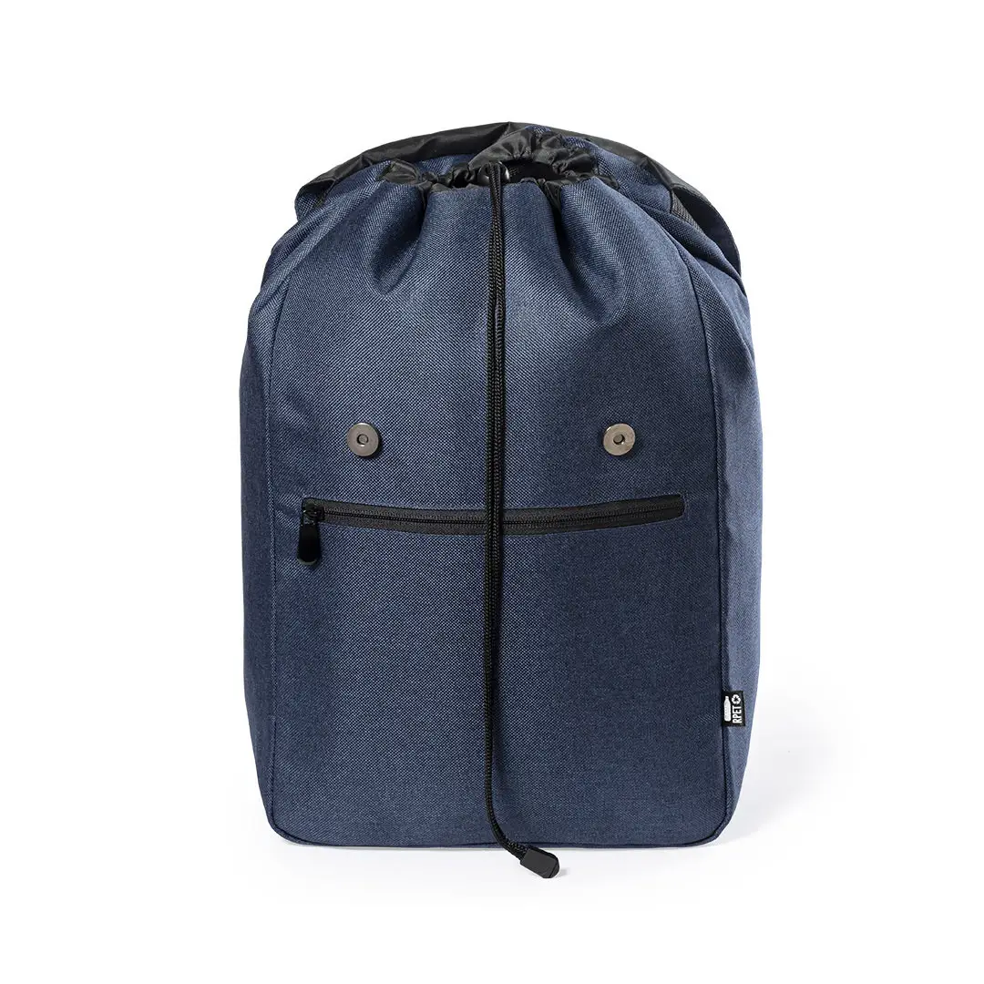 Mochila urban de línea nature, fabricada en resistente poliéster 300D RPET libre de PVC, elaborado a partir de plástico reciclado, para así fomentar la reutilización de residuos plásticos y contribuir a la sostenibilidad del planeta. Bolsillo principal con tiras y cierres de hebilla metálicos con bolsillo frontal de cremallera y tirador metálico. Interior con bolsillo acolchado para portátil de hasta 15 pulgadas y tablet de hasta 10 pulgadas. Cintas ajustables para hombro acolchadas, con distintivo RPET en etiqueta exterior.