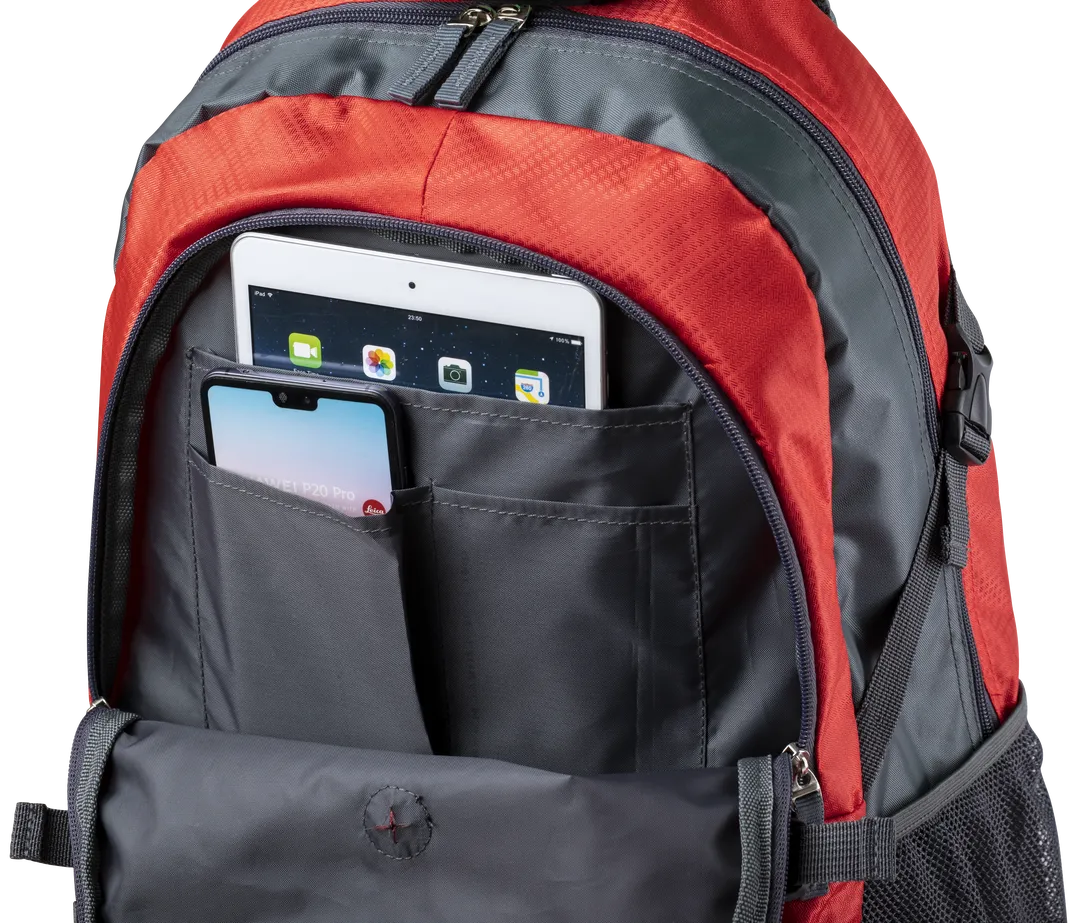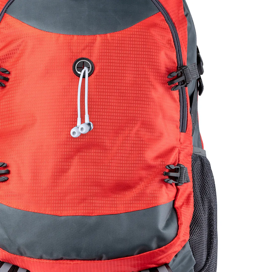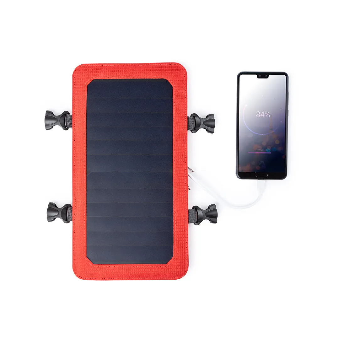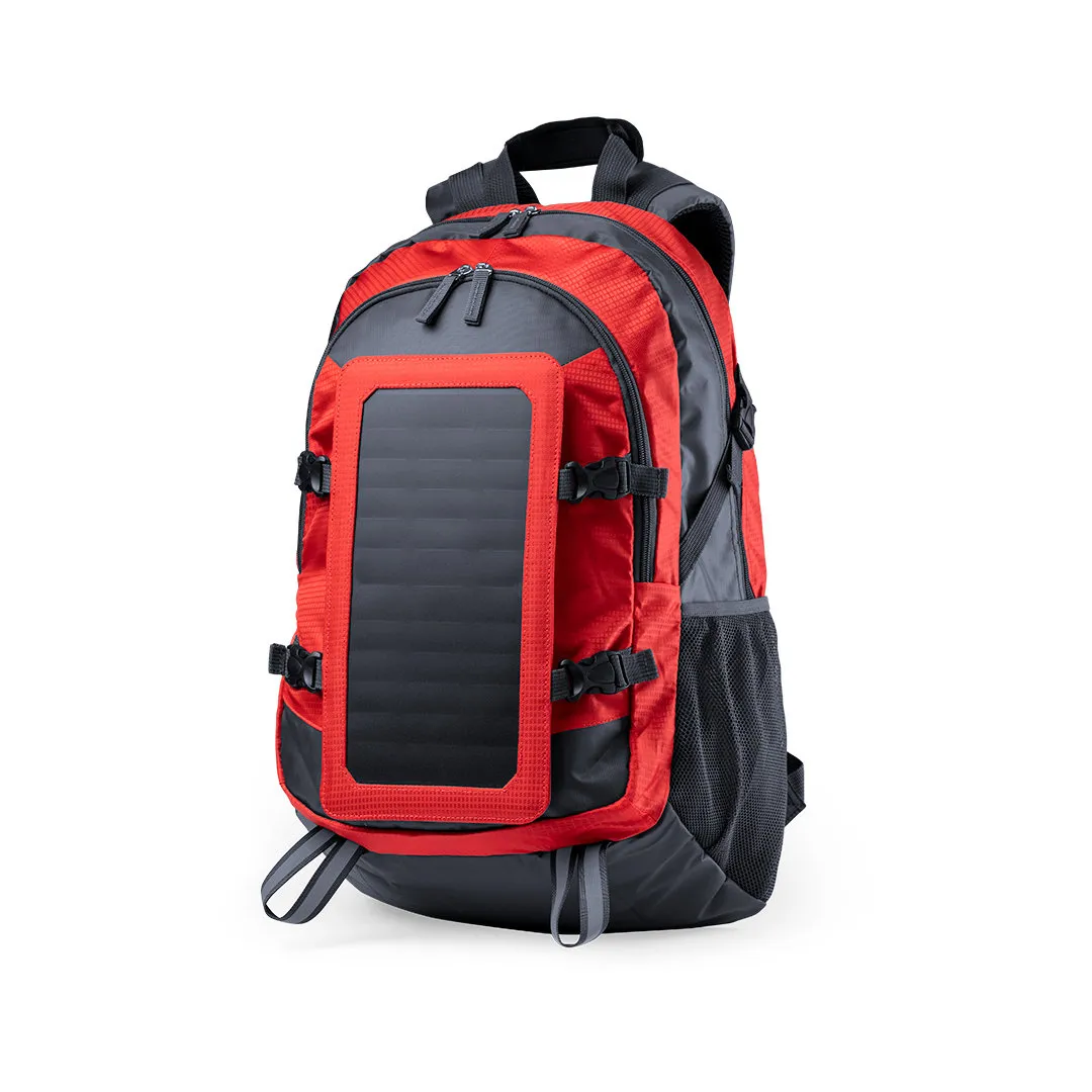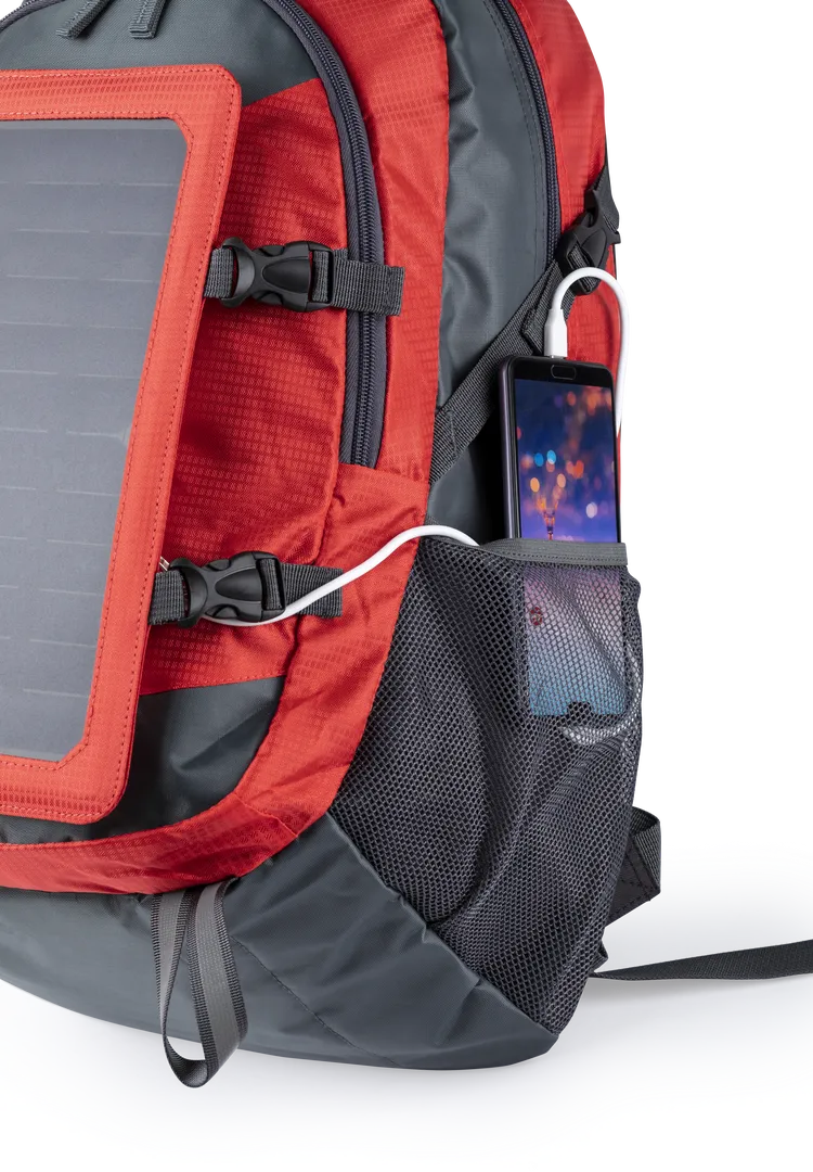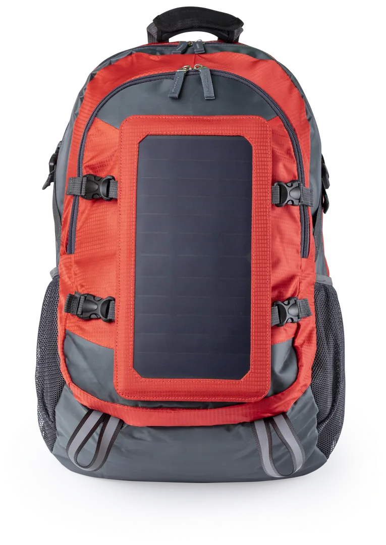 Completa mochila cargadora con panel solar de 6.5W, capaz de suministrar un ciclo de carga completo a la mayoría de los nuevos modelos de smartphones y tablets. Fabricada en resistente material ripstop. Salida de auriculares, con bolsillo interior acolchado para portátil de hasta 15 pulgadas y salida USB para carga de dispositivos (cable incluido). Con multitud de bolsillos, espalda con acolchado ergonómico y cintas de hombros ajustables y acolchadas. Cinta de ajuste para el pecho y prácticas cintas reflectantes.