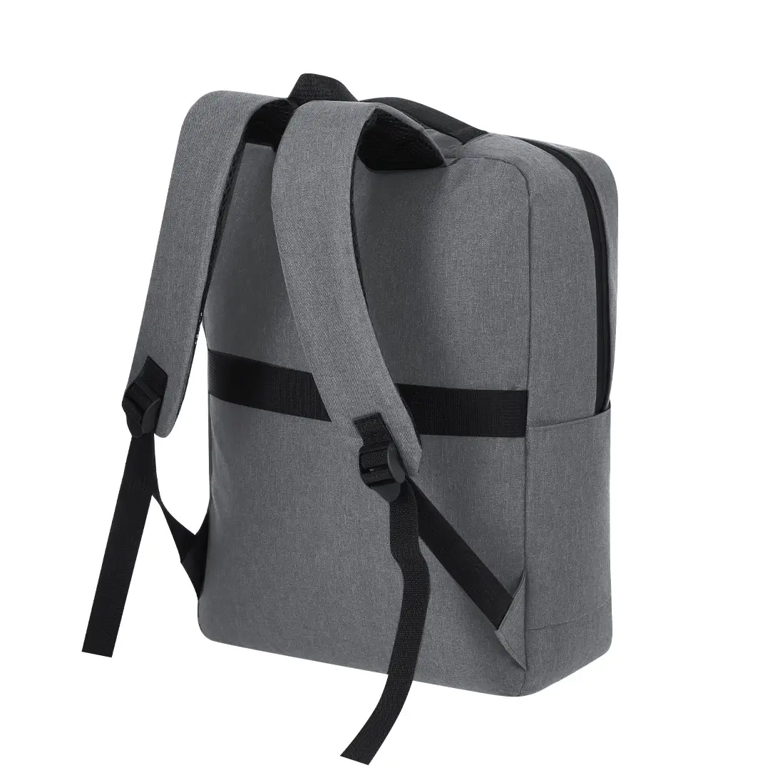 Mochila fabricada en suave poliéster RPET 600D. Con bolsillo principal de cierre de cremallera con doble tirador. Bolsillo interior para portátil de hasta 15 pulgadas. Incluye dos bolsillos frontales con cierre de cremallera invisibles y bolsillos en los laterales. Espalda y cintas acolchadas ajustables. Incluye cinta de transporte para ajuste en trolley o maleta, ideal para viajes. Con distintivo de RPET en etiqueta. El material RPET se elabora a partir de plástico reciclado, para así fomentar la reutilización de residuos plásticos y ayudar a la sostenibilidad del planeta.