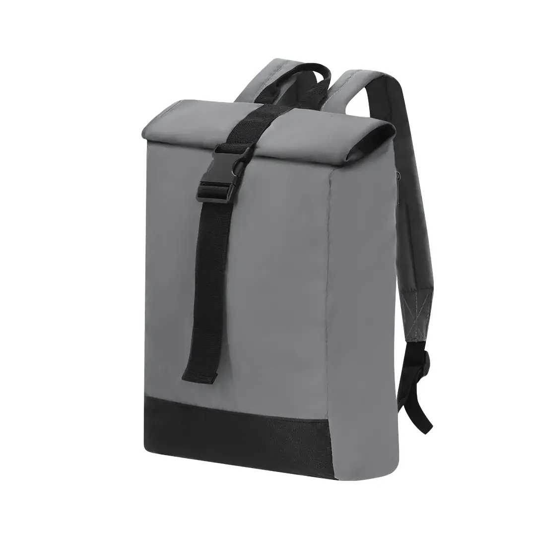 Mochila confeccionada en sueve y resistente poliéster 190T reflectante . Con sistema de cierre enrollable y hebilla ajustable. Interior de gran capacidad con compartimento interior acolchado para portátil de hasta 15 pulgadas. Cintas de hombros reflectantes y espalda. Además, cuenta con un bolsillo en el lateral trasero izquierdo con cierre de cremallera. Perfecta para viajes o para el día a día gracias a su gran visibilidad, se adapta a todo estilo de vida haciendo que ir en bicicleta o andando sea más seguro.