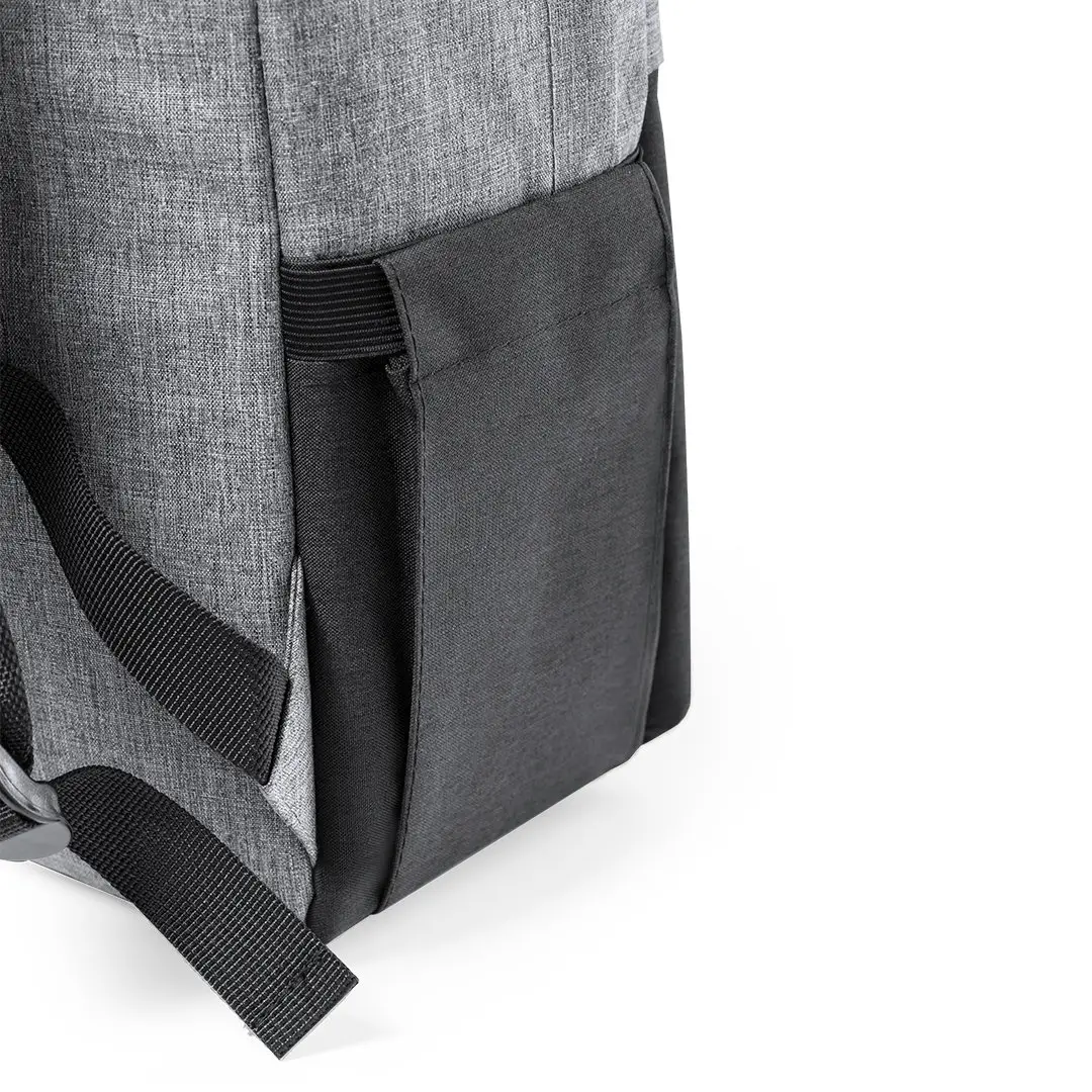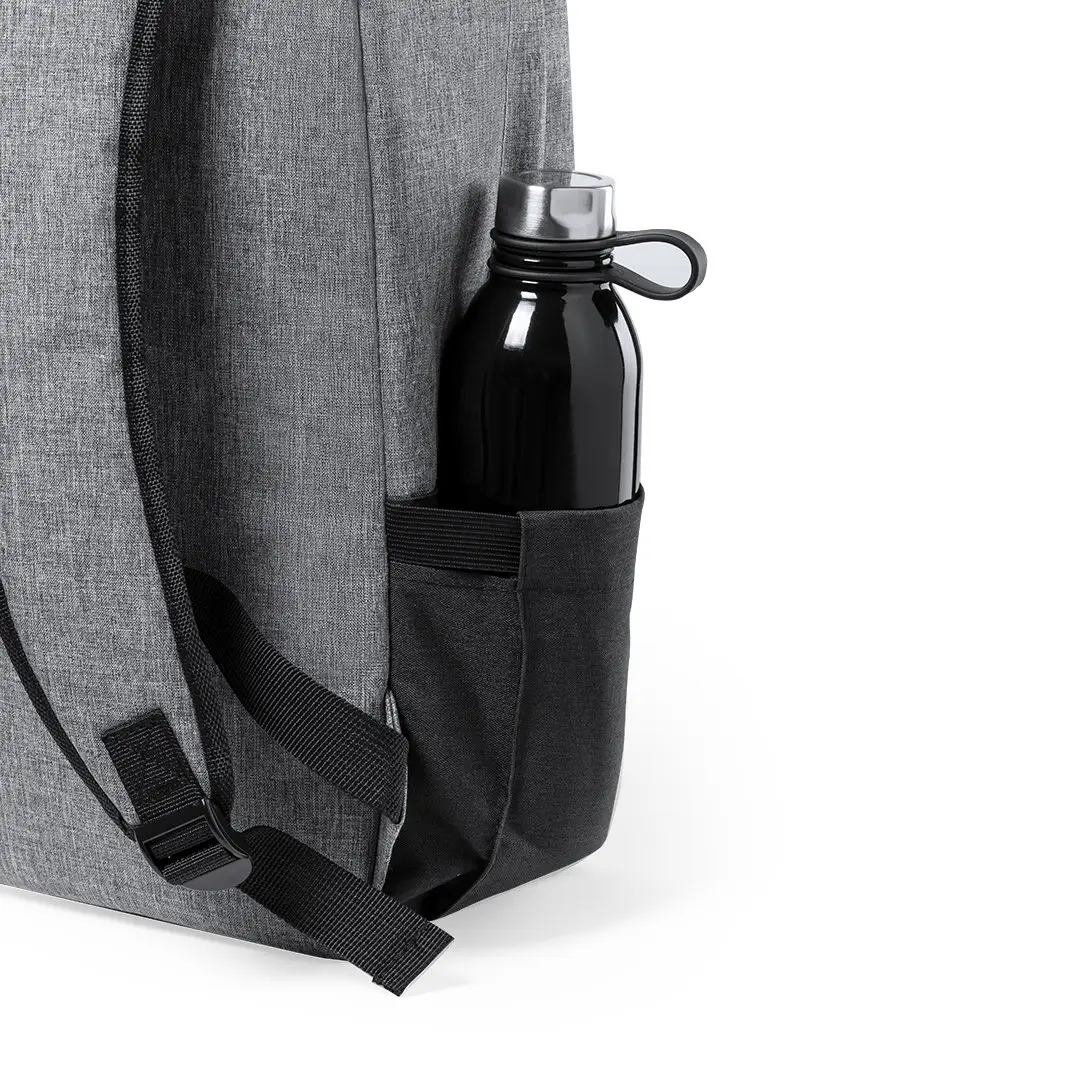 Mochila en resistente poliéster 600D RPET, elaborado a partir de plástico reciclado para así fomentar la reutilización de residuos plásticos y contribuir a la sostenibilidad del planeta. En elegante acabado bicolor, incluye etiqueta exterior con distintivo RPET. Bolsillo principal con compartimentos acolchados para ordenador portátil de hasta 15 pulgadas y tablet de hasta 10 pulgadas. Espalda y cintas acolchadas.