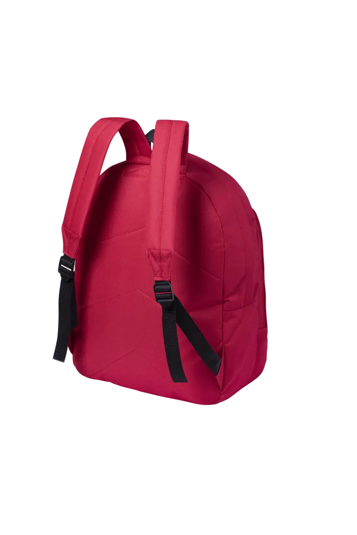Mochila en resistente poliéster 600D de desenfadado diseño en variada gama de colores. Dos compartimentos principales con cierre de cremallera y bolsillo en frontal. Redecilla lateral de fácil acceso, tiradores con cinta para fácil apertura y accesorios en color negro. Espalda acolchada y cintas de hombros ajustables con acolchado.