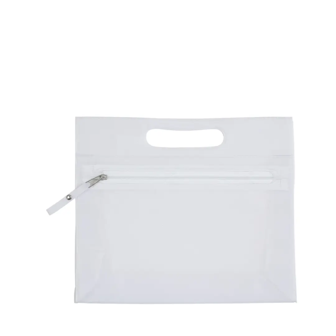 Neceser multiusos en resistente PVC translúcido de variada gama en vivos colores. Con resistente asa troquelada y cierre de cremallera a juego, con cinta en tirador para fácil apertura.