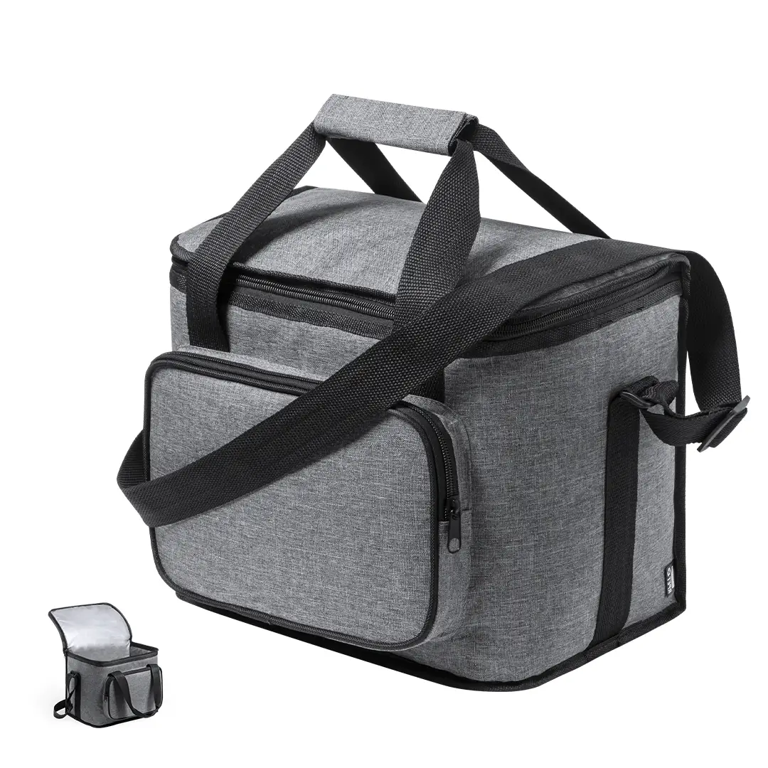 Nevera de línea nature y en resistente 600D RPET efecto melange, elaborado a partir de plástico reciclado para así fomentar la reutilización de residuos plásticos y contribuir a la sostenibilidad del planeta. Detalles en negro y base reforzada. Compartimento principal con cierre de cremallera e interior en PEVA. Incluye bolsillo exterior de cremallera, asas reforzadas con velcro y cinta bandolera ajustable, con distintivo RPET en etiqueta exterior.
