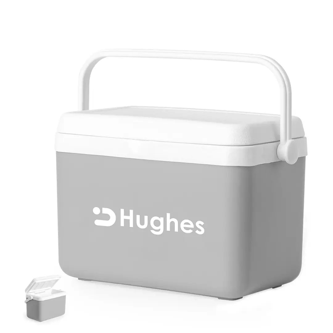 Nevera fabricada en PP de 4L. Atractivo diseño vintage para mantener bebidas y alimentos fríos, de diseño rígido con doble pared. Tapadera de bisagra con cierre de seguridad y asa rígida para un fácil transporte. Con base de color gris y accesorios en blanco. Presentada individualmente en bolsa reciclada.