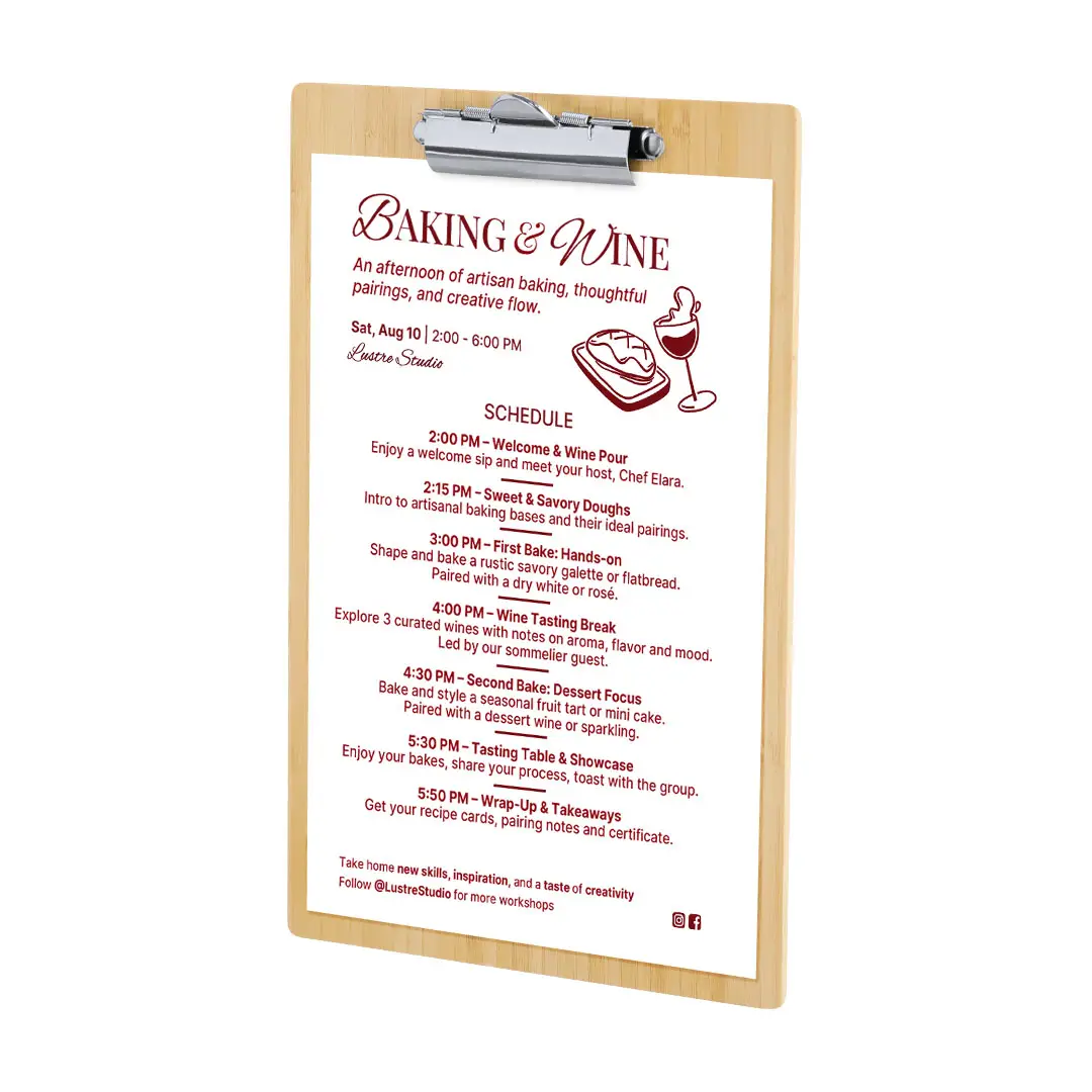 Excelente organizador en bambú tamaño 24,4 x 32,7cm. Con resistente pinza para documentación en acabado plateado.