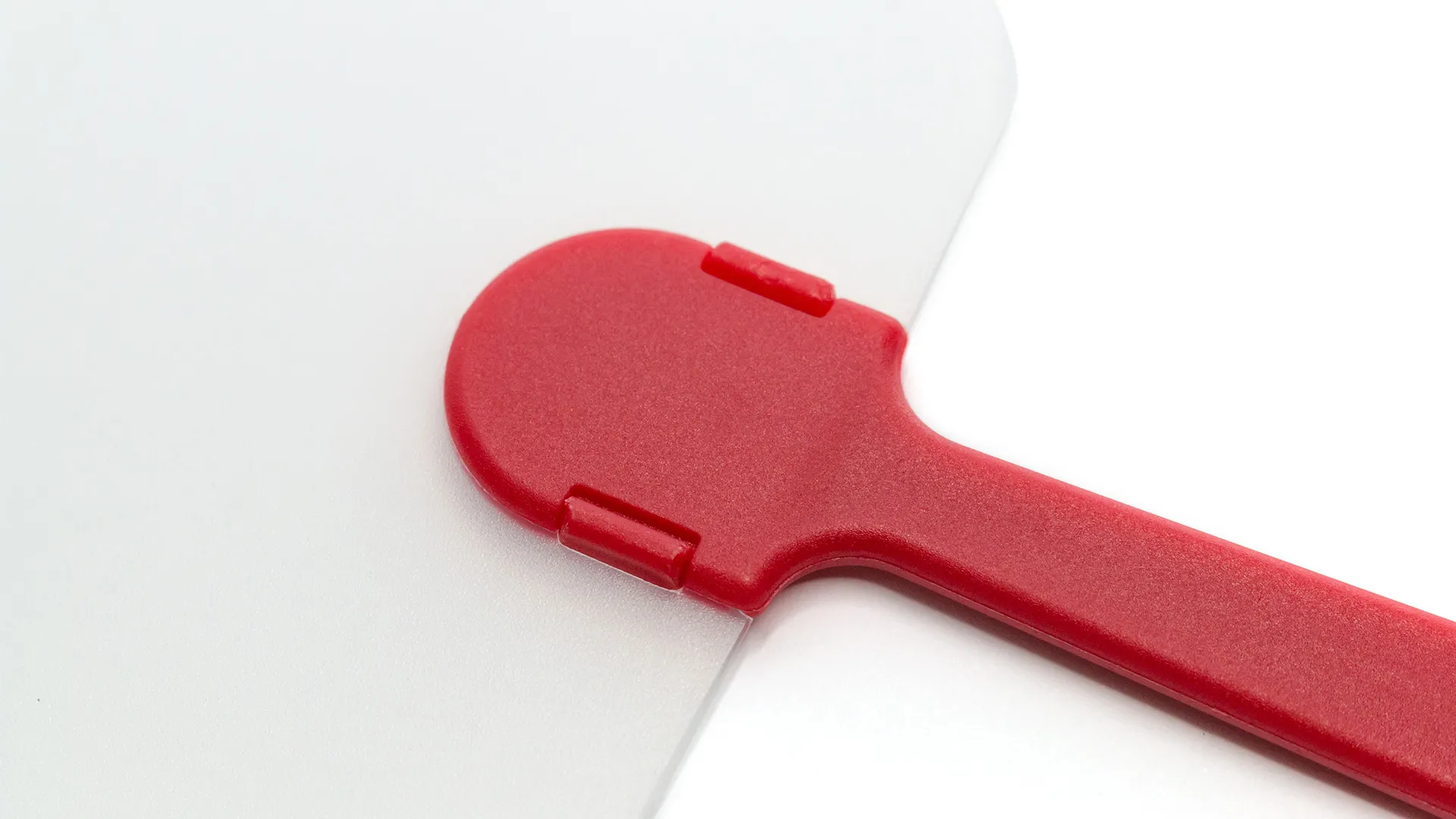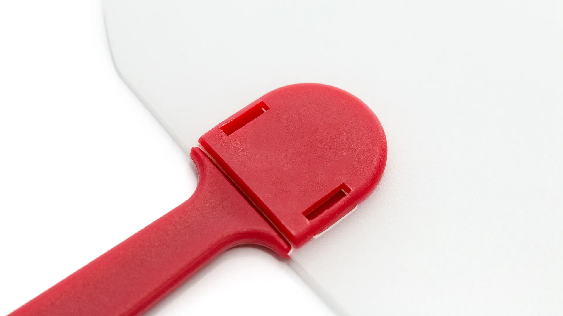 Pai pai con superficie en colro blanco de acabado translúcido y mango en variada gama de vivos colores.