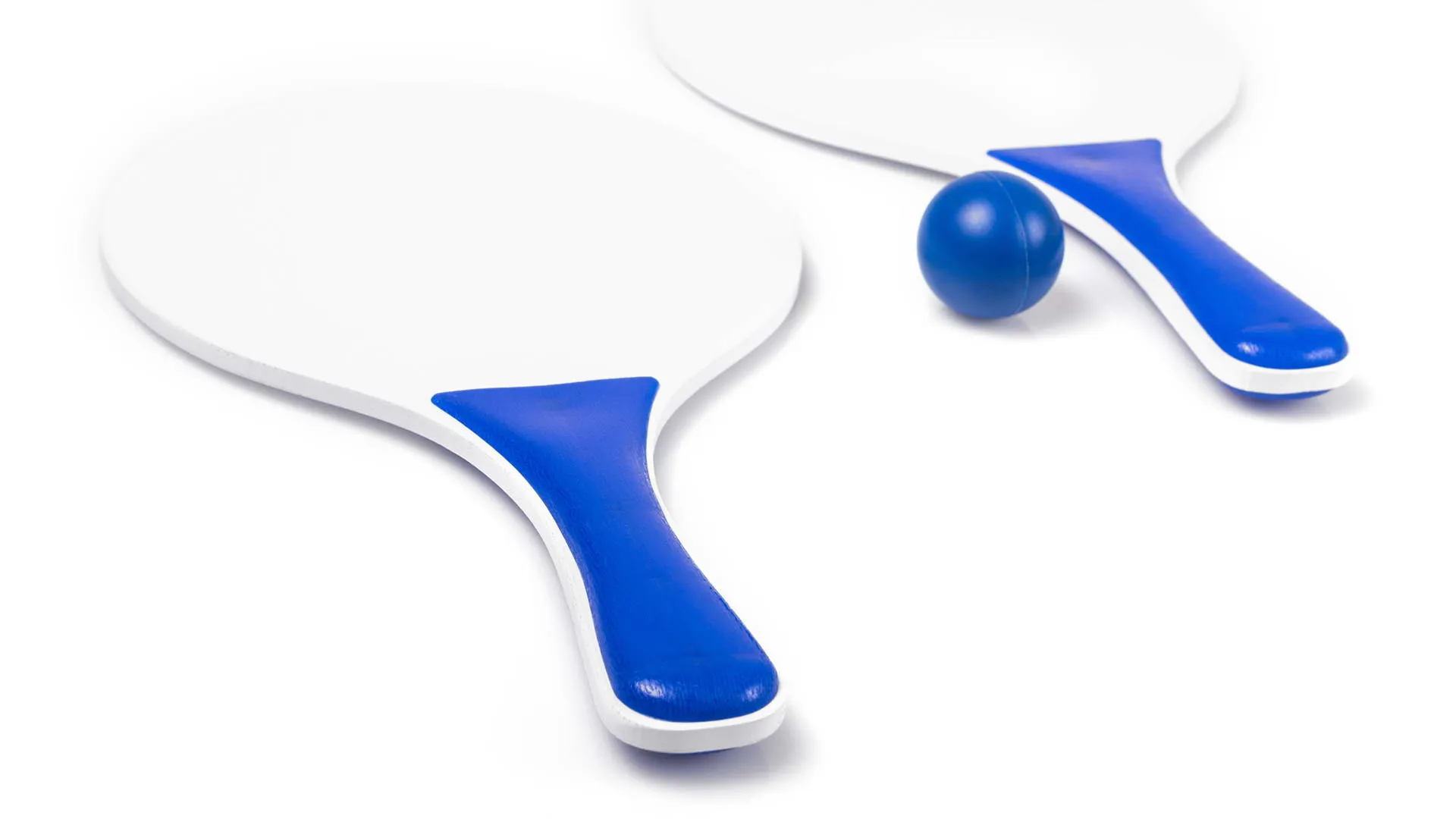 Par de palas de playa en madera natural con mango reforzado en variada gama de vivos colores. Presentadas en bolsa redecilla con pelota a juego.