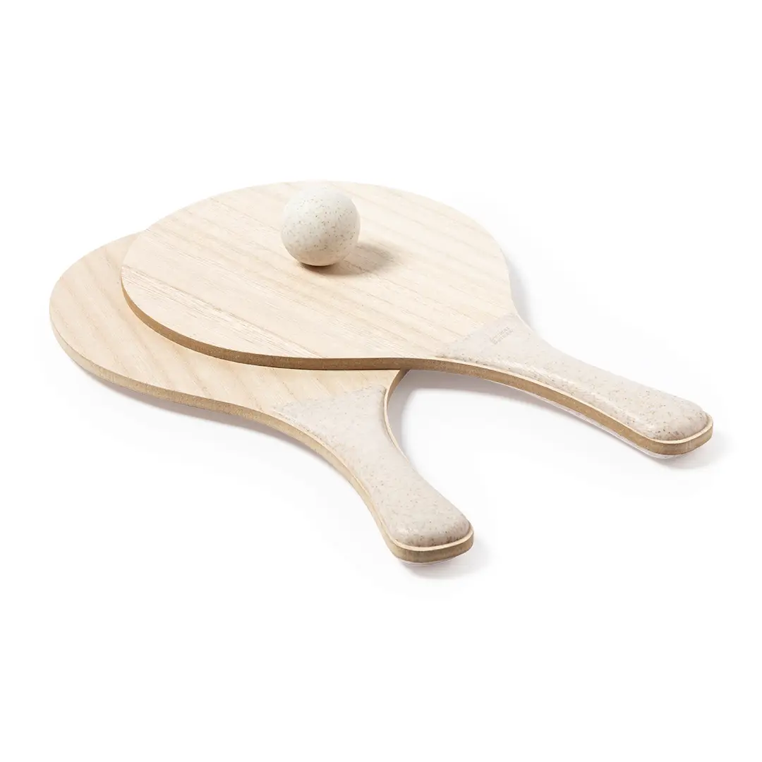 Par de palas de playa especiales para la sublimación. Fabricadas en madera, con mango reforzado en caña de trigo. Zona especial para la sublimación en la parte plana de la pala con posibilidad de diseños a todo color. Logotipo en el mango. Presentadas en bolsa de rejilla, con pelota de caña de trigo.La caña de trigo fomenta la utilización de materias primas naturales, reduciendo así las emisiones contaminantes.