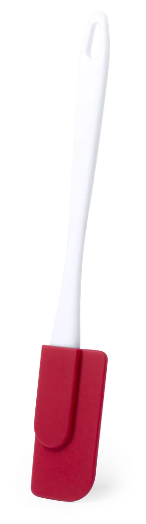 Paleta de cocina con extremo de silicona en vivos colores y confortable mango ergonómico con troquelado para colgar.
