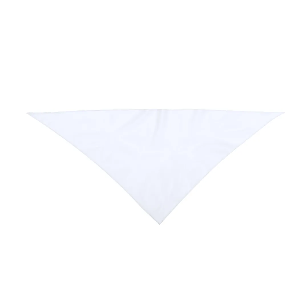 Pañoleta tamaño extra de diseño tirangular. Con cuerpo en suave poliéster de vivos y variados colores. Pespuntes de refuerzo en los laterales. Color blanco especialmente diseñado para marcaje en sublimación.