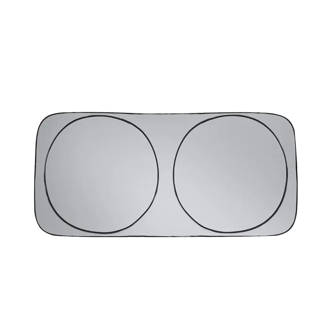Parasol plegable de diseño práctico y ligero, fabricado en poliéster, ideal para coches y furgonetas con medidas de 150 x 70 cm. Su cara exterior presenta color sólido, mientras que el interior es de plata brillante, proporcionando protección eficaz contra el sol y el calor. Incluye elástico de cierre para facilitar su almacenamiento. Incluye funda individual a juego.