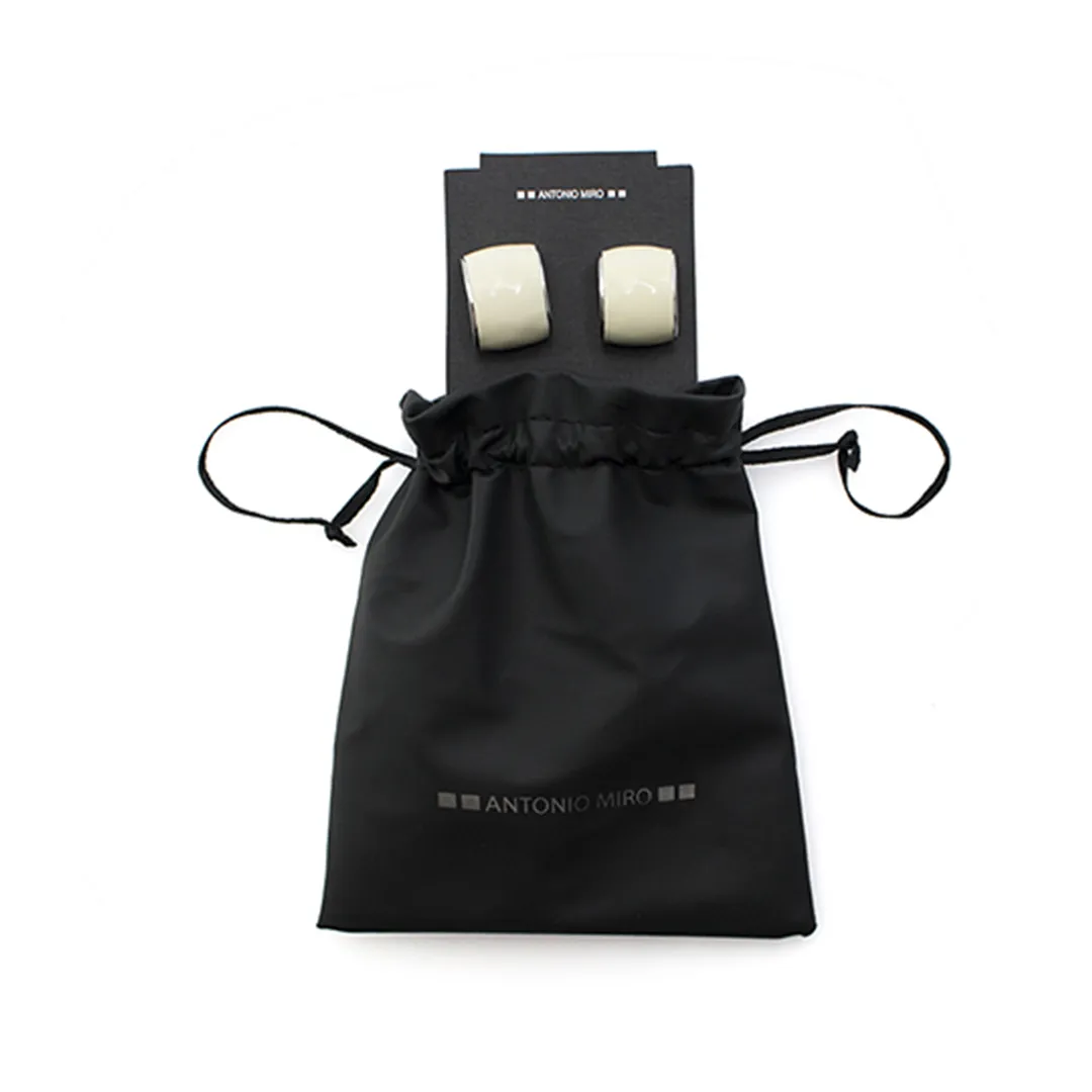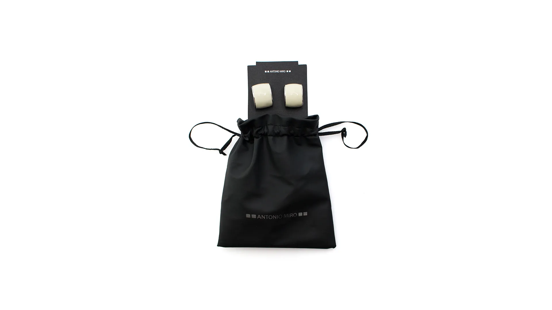 Pendientes de Antonio Miró en aleación de zinc plateado. Presentados en bolsita individual.