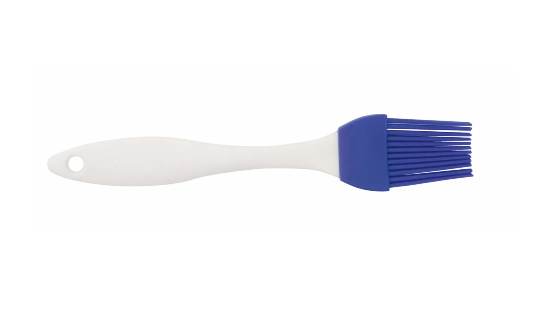 Pincel de cocina con extremo de silicona en vivos colores y confortable mango ergonómico con troquelado para colgar.