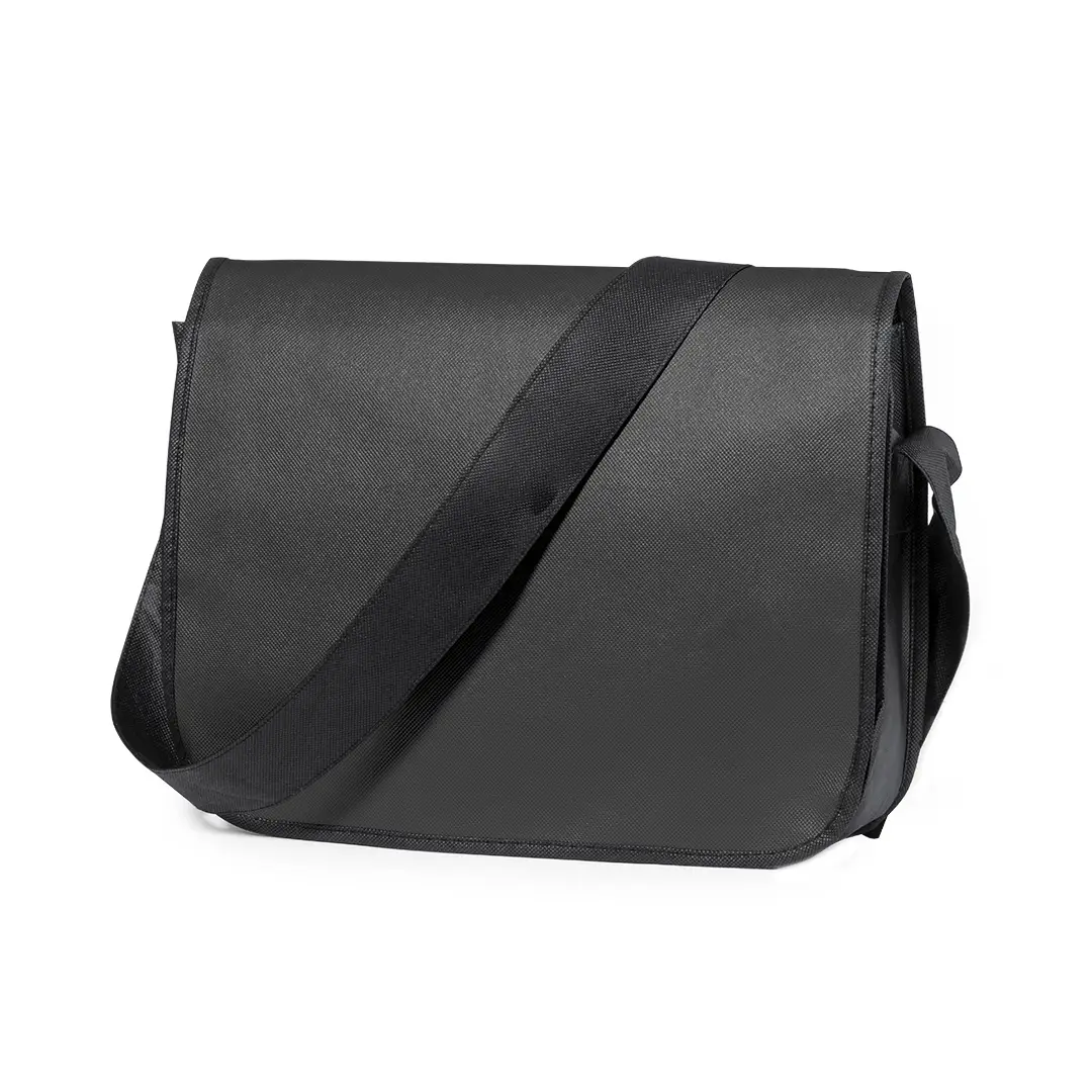 Portadocumentos con solapa de cierre de velcro en resistente non-woven con elegante ribete en color negro. Con compartimentos interiores para bolígrafos.