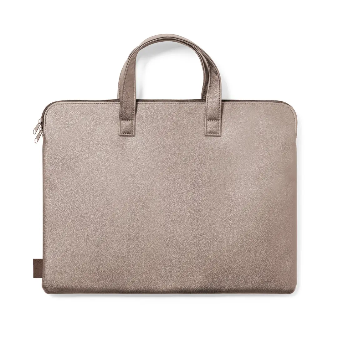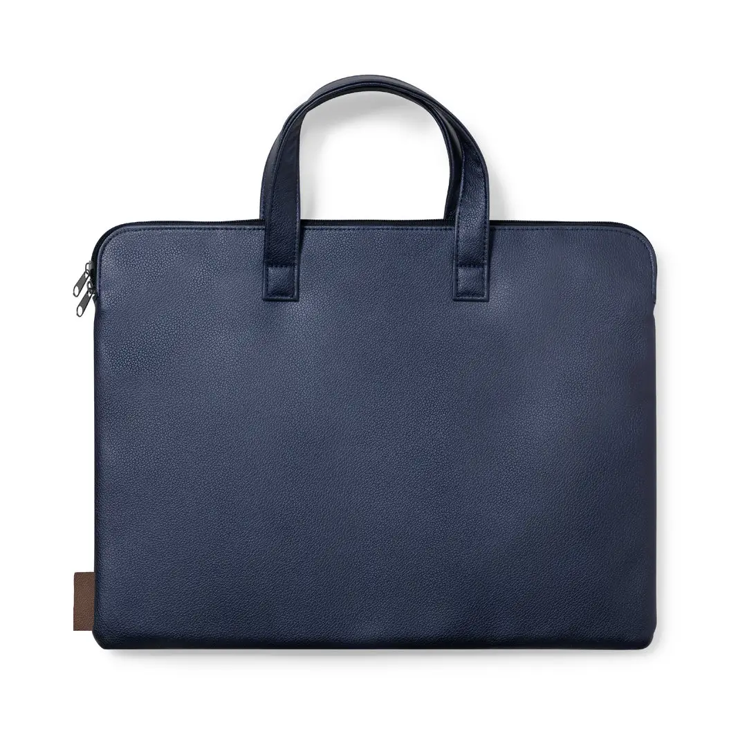 Resistente portadocumentos premium, fabricado en cuero reciclado. Compartimento principal con cierre de cremallera y doble tirador metálico. Interior acolchado, con bolsillo exterior y asas reforzadas a juego. Etiqueta exterior con distintivo cuero reciclado. El cuero reciclado rescata las fibras desechadas en los procesos de fabricación del cuero, minimizando el desperdicio de material, contribuyendo a reducir el impacto ambiental y manteniendo a la vez sus propiedades originales.