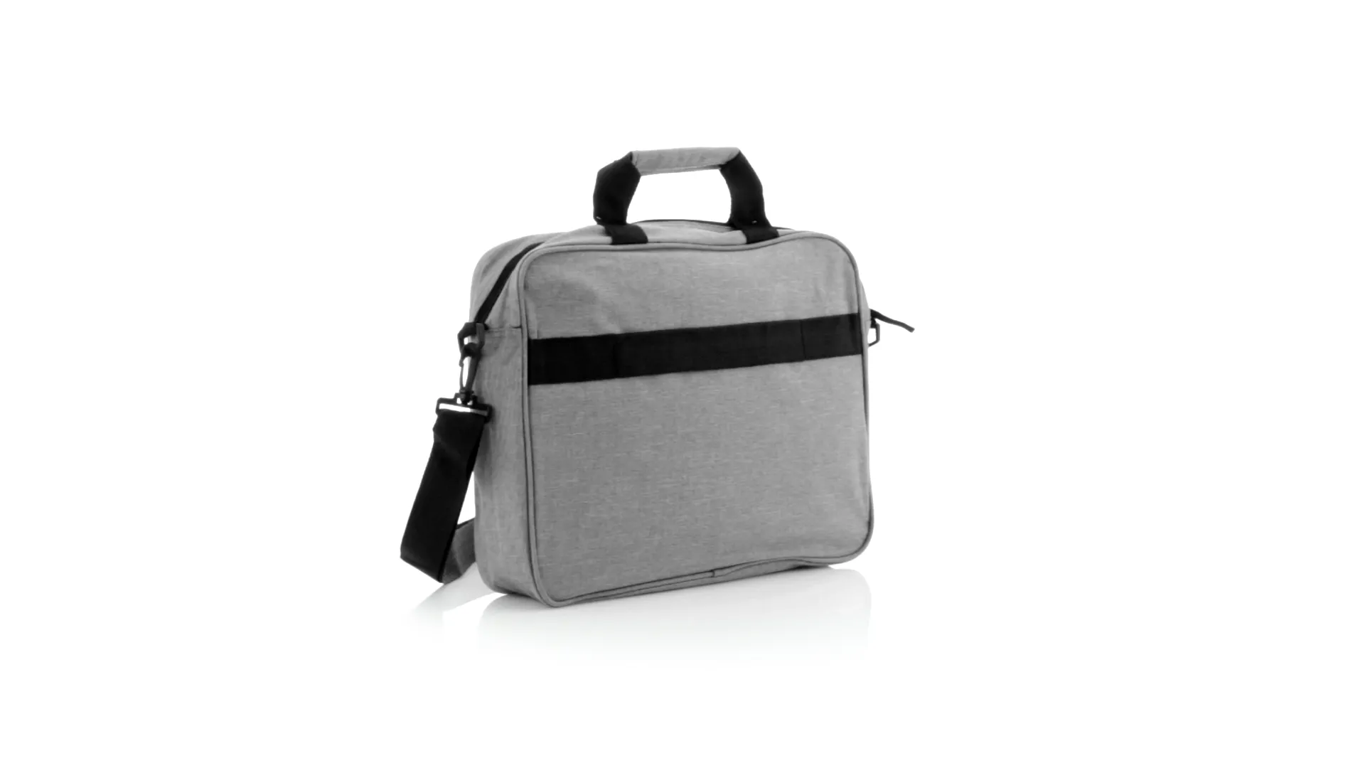 Portadocumentos de cierre de cremallera en elegante poliéster 600D de color gris. Con bolsillo exterior con cierre de velcro, cómodas asas reforzadas, cinta bandolera ajustable con cierre de mosquetón y accesorio en parte trasera para acople en barra de trolley.