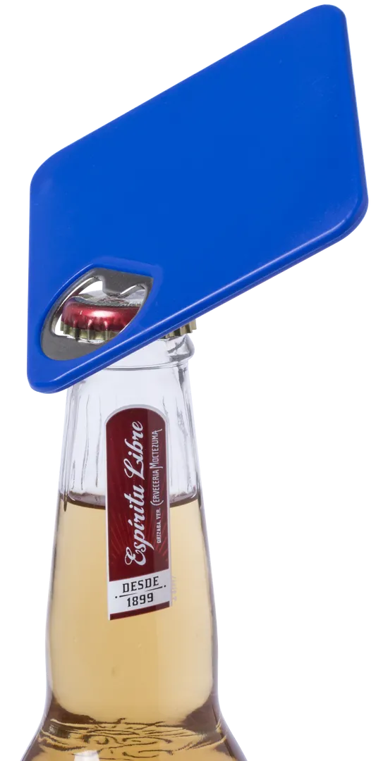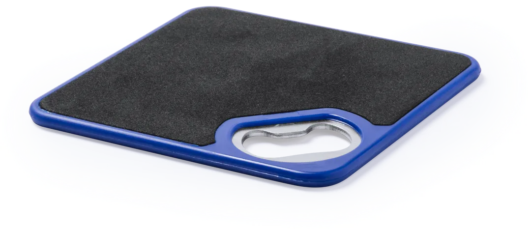 Original posavasos con abridor metálico integrado en variada gama de vivos colores. Con superficie anti deslizante en la base.