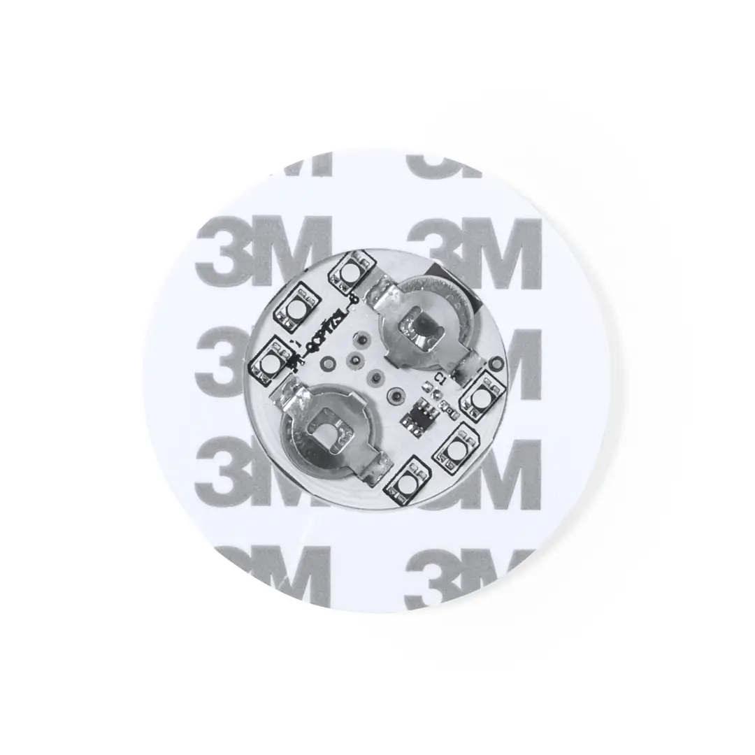 Original posavasos con 6 LEDs para iluminar las bebidas. Con botón en la base y diferentes posiciones de iluminación: en colores fijos o variados. Se fija a la base de cualquier bebida con cinta autoadhesiva y está alimentado por dos pilas de botón (incluidas).