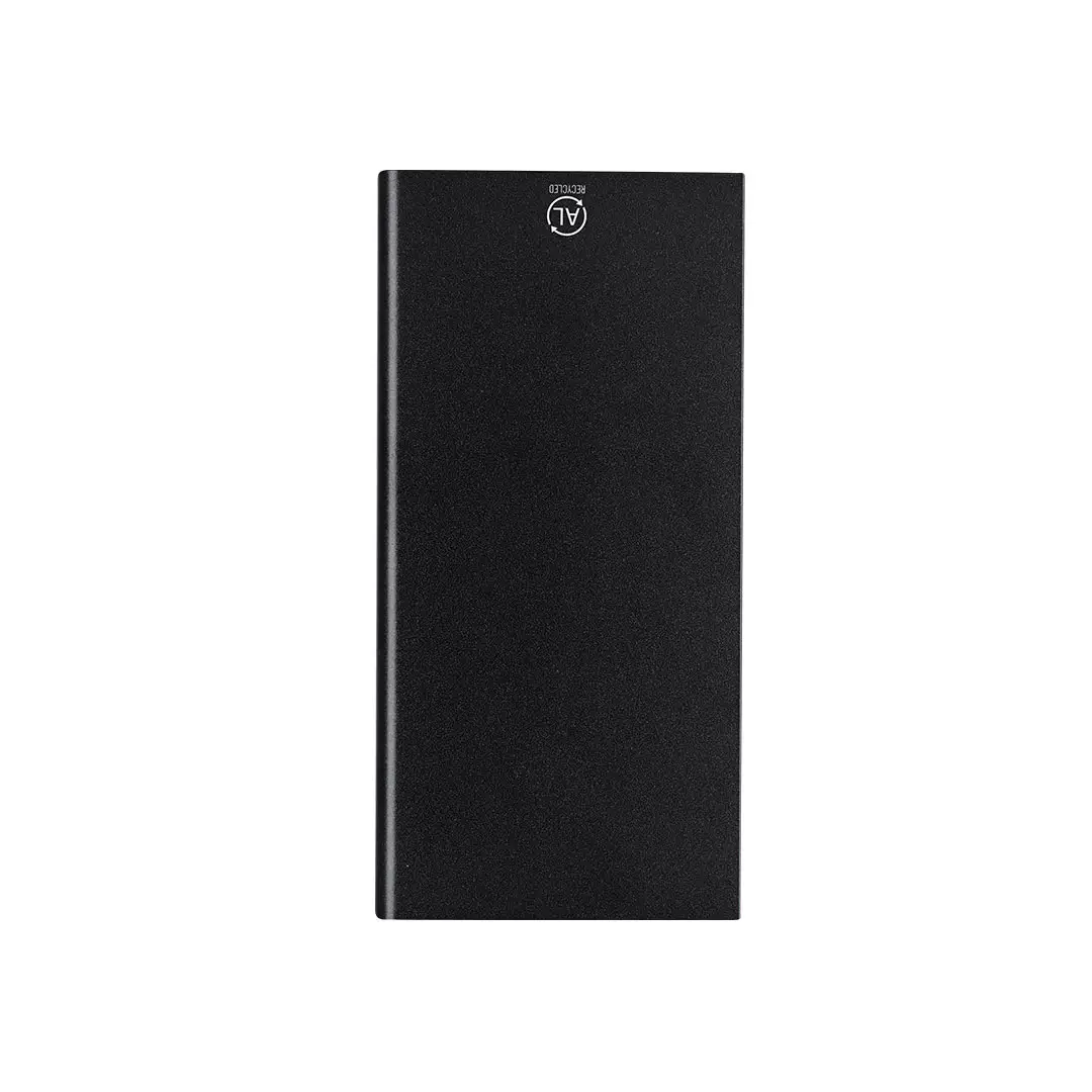 Batería auxiliar externa de 8.000 mAh fabricada en Aluminio Reciclado. Con 2 salidas USB y conexión dual de entrada y salida Tipo C. Indicadores LED de estado de carga, 1 LED con función linterna y cable de carga Tipo C incluido. Incluye distintivo de Aluminio Reciclado.Entrada/Salida USB C: 5V DC 2.4ASalidas USB: 5V DC 2.4AEl Aluminio Reciclado es un material con posibilidades de reciclaje casi infinitas, sin perder sus propiedades originales y consumiendo menos energía en este proceso.Certificación GRS (Global Recycled Standard / Estándar de Reciclaje Global), que garantiza el origen reciclado del material usado para fabricar el producto.Las capacidades mostradas en todas nuestras baterías auxiliares externas son reales, incorporando todas ellas baterías de grado A y no recicladas, con una vida útil de al menos 500 ciclos de carga y según normativa CE.Además, están fabricadas conforme a los estándares RoHS y en cumplimiento con los siguientes requisitos de seguridad:Sistema de protección contra sobrecarga del power bank.Sistema de protección contra descarga completa que proporciona una mayor durabilidad del power bank.Sistema de bloqueo para evitar cortocircuitos.Sistema de transferencia de carga constante, acorde con la capacidad del dispositivo de destino.