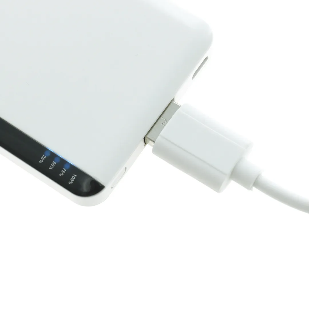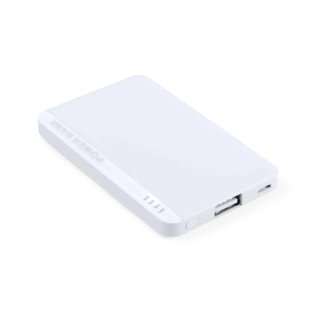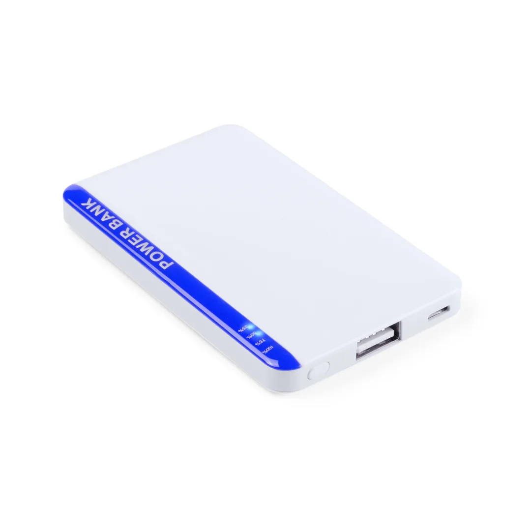 Batería auxiliar externa bicolor extraplana de 2.200 mAh de capacidad de carga con cable micro USB y ledes indicadores de estado de carga. Amplia superficie de marcaje y presentada en atractiva caja de diseño. Las capacidades mostradas en todas nuestras baterías auxiliares externas son reales, incorporando todas ellas baterías de grado A y no recicladas, con una vida útil de al menos 500 ciclos de carga y según normativa CE. Además, están fabricadas conforme a los estándares RoHS y en cumplimiento con los siguientes requisitos de seguridad: Sistema de protección contra sobrecarga del power bank. Sistema de protección contra descarga completa que proporciona una mayor durabilidad del power bank. Sistema de bloqueo para evitar cortocircuitos. Sistema de transferencia de carga constante, acorde con la capacidad del dispositivo de destino.