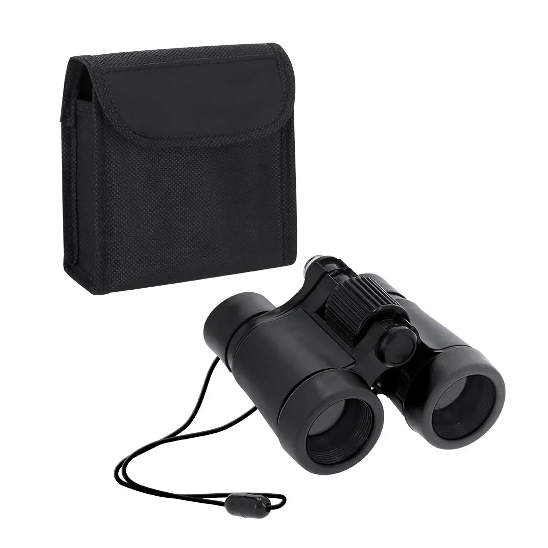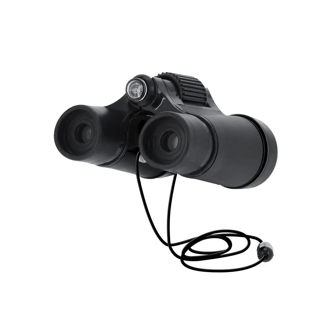 Prismáticos ajustables de largo alcance con lentes de cristal y cuerpo en resistente ABS. Con suave y confortable zona de apoyo alrededor de los ojos. Con brúula y cordón con sistema antiestrangulamiento. Incluye estuche con cierre de velcro y cinta para cinturón.