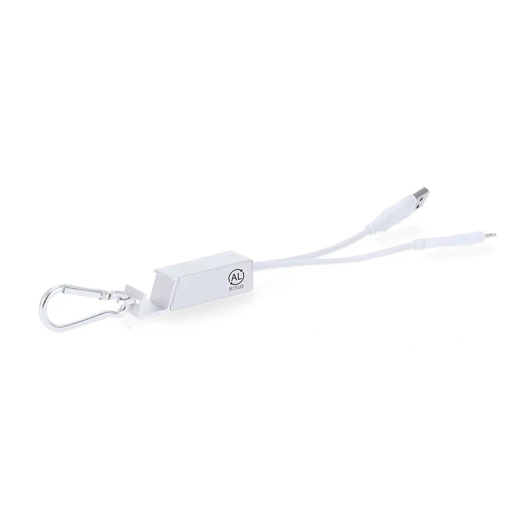 Puerto USB cargador con soporte fabricado en Aluminio Reciclado. Incluye dos conexiones output dual Tipo C/USB y tipo C/Lightning, y dos conexiones input tipo C y USB.Con mosquetón para fácil transporte.Con distintivo de Aluminio Reciclado. El aluminio reciclado es un material con posibilidades de reciclaje casi infinitas, sin perder sus propiedades originales y consumiendo menos energía en este proceso.Certificación GRS (Global Recycled Standard / Estándar de Reciclaje Global), que garantiza el origen reciclado del material usado para fabricar el producto.