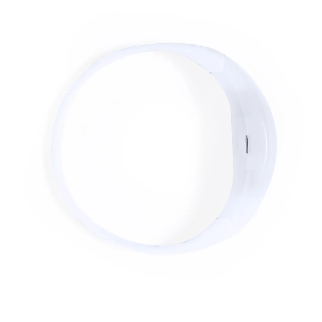 Original pulsera con luces LEDs. En suave silicona y con 2 luces LEDs de colores en su interior, alimentadas por pila de botón (incluida). Con discreto interruptor sensible al sonido y que cambia automáticamente el color de las luces al ritmo de la música. Presentada individualmente en una bolsa de papel reciclado.