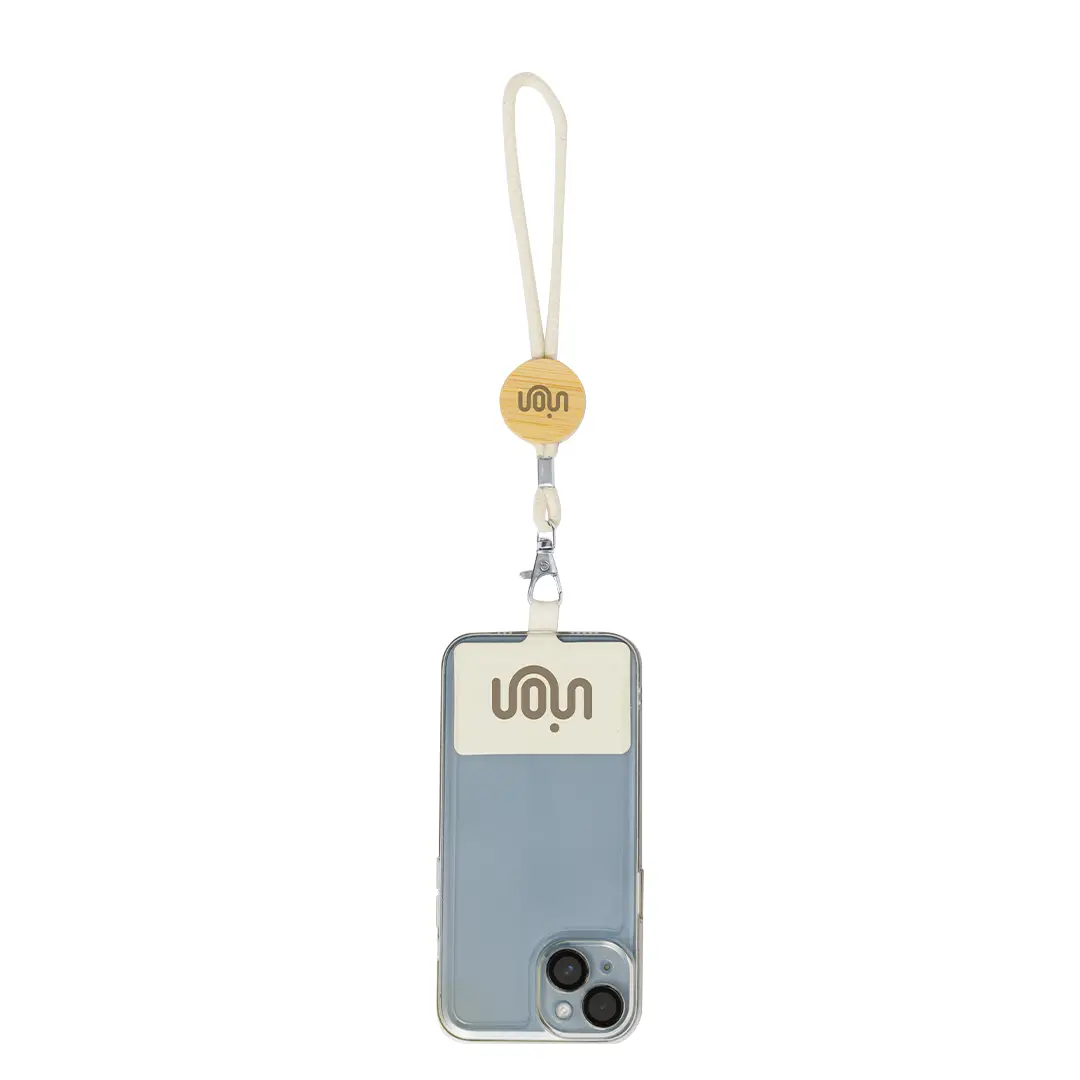 Original pulsera portamóvil en suave algodón, adaptable a todo tipo de muñecas. Con accesorio de transporte para situar entre la funda y el smartphone. Pieza central de bambú para personalización, especial para grabado en láser. Presentado individualmente en bolsa de papel reciclado.Materiales como el bambú fomentan la utilización de materias primas naturales, reduciendo las emisiones contaminantes. Proviene de una planta de gran resistencia y versatilidad, con crecimiento y regeneración rápidos, siendo una excelente alternativa al uso de madera tradicional.