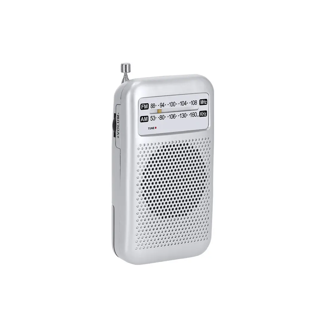 Radio de diseño vintage. Con altavoz de 3W de potencia. Opciones AM/FM con sintonización manual. Incluye botón de control de volumen y antena extensible. Dispone de salida jack de 3,5 mm. Alimentación a pilas (2xAA no incluidas).