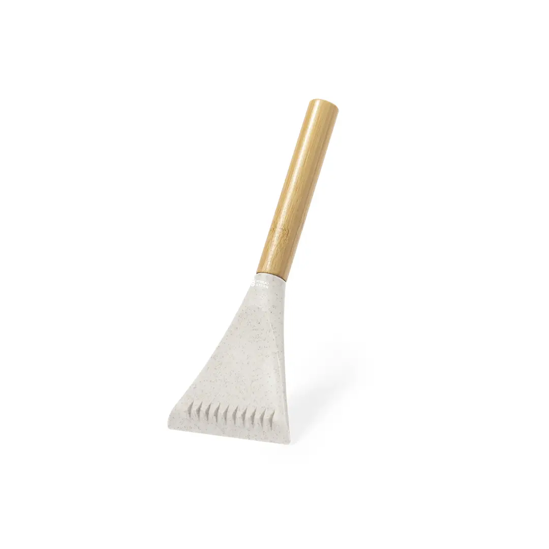 Práctico rascador de hielo fabricado en bambú y caña de trigo. Con forma de pala, su mango está fabricado en bambú y la zona de rascado está hecha de caña de trigo, con parte limpiadores y sierra integrada. Logo ditintivo en el mango y presentado individualmente en bolsa de papel kraft.Materiales como el bambú fomentan la utilización de materias primas naturales, reduciendo las emisiones contaminantes. Proviene de una planta de gran resistencia y versatilidad, con crecimiento y regeneración rápidos, siendo una excelente alternativa al uso de madera tradicional.La caña de trigo fomenta la utilización de materias primas naturales, reduciendo así las emisiones contaminantes.