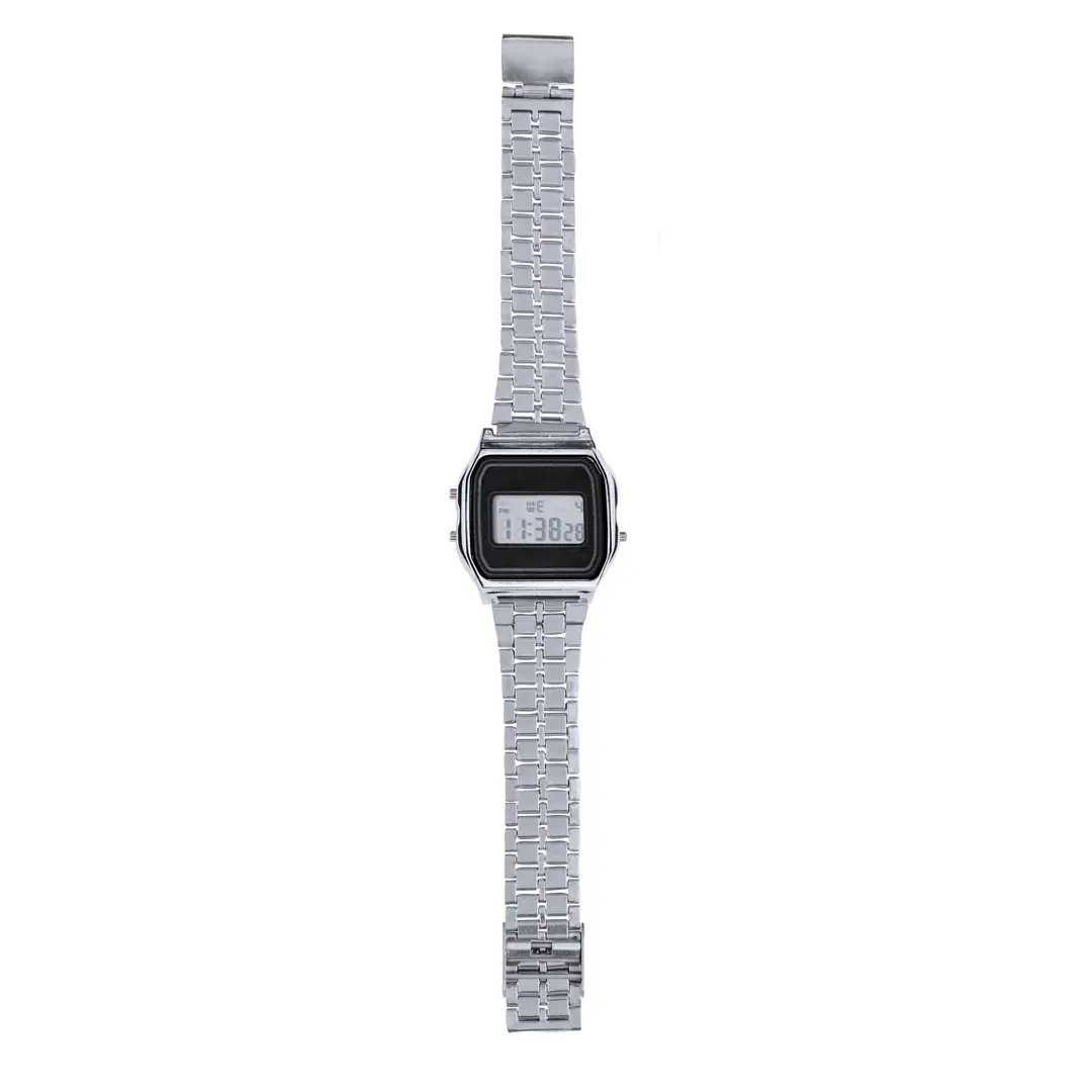 Reloj con sofisticado acabado metálico. Con pantalla con retroiluminación LED, que garantiza una lectura clara de la hora incluso en condiciones de poca luz. Ofrece una combinación de funciones prácticas, incluyendo hora, calendario, cronómetro y alarma, que permiten gestionar el tiempo de manera eficiente.Además, es resistente a salpicaduras, asegurando durabilidad y fiabilidad en el uso diario. Con tecnología moderna, elección ideal para quienes buscan un accesorio distintivo y funcional.
