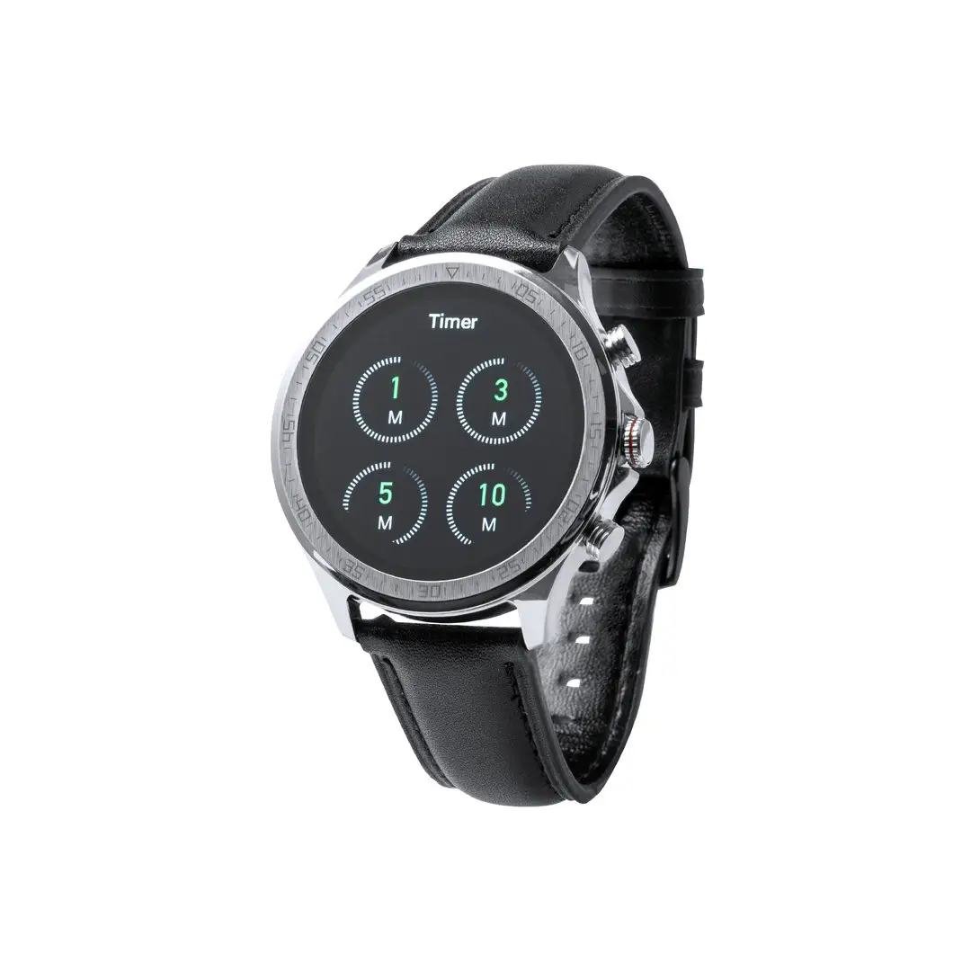 Reloj inteligente multifunción de diseño casual, con conexión Bluetooth. Elegante caja de diseño circular y correa en piel. Pantalla TFT táctil de 1,32 pulgadas y batería de 230 mAh, que lo convierten en el gadget perfecto para todo tipo de actividades deportivas, de ocio y para el día a día. Multitud de funciones disponibles, interfaz multilenguaje y resistente a salpicaduras de agua, con APP disponible para iOS y Android. Presentado en caja individual de diseño, con manual de instrucciones en español e inglés.