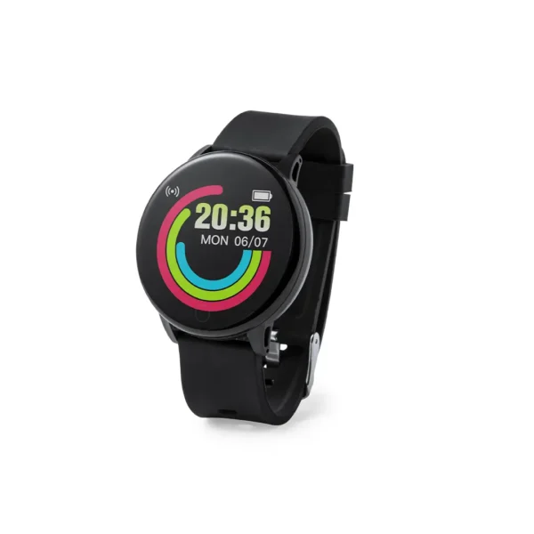 Reloj inteligente multifunción de diseño casual, con conexión Bluetooth. Caja de diseño circular y correa en TPU a juego. Pantalla TFT táctil de 1,30 pulgadas y batería de 180 mAh, que lo convierten en el gadget perfecto para todo tipo de actividades deportivas, de ocio y para el día a día. Multitud de funciones disponibles, interfaz multilenguaje y resistente a salpicaduras de agua, con APP disponible para iOS y Android. Presentado en caja individual de diseño, con manual de instrucciones en español e inglés.
