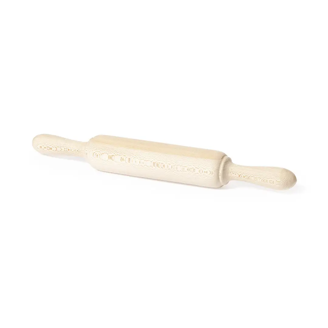 Rodillo de cocina de fabricación europea y hecho en madera natural, con cómodos mangos en los extremos. Incluye certificación PEFC, contribuyendo así a la preservación de los bosques y la biodiversidad forestal.