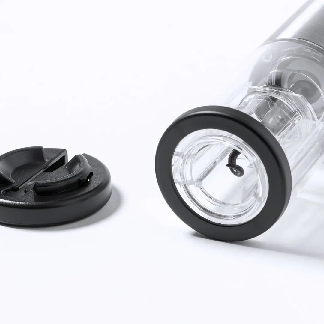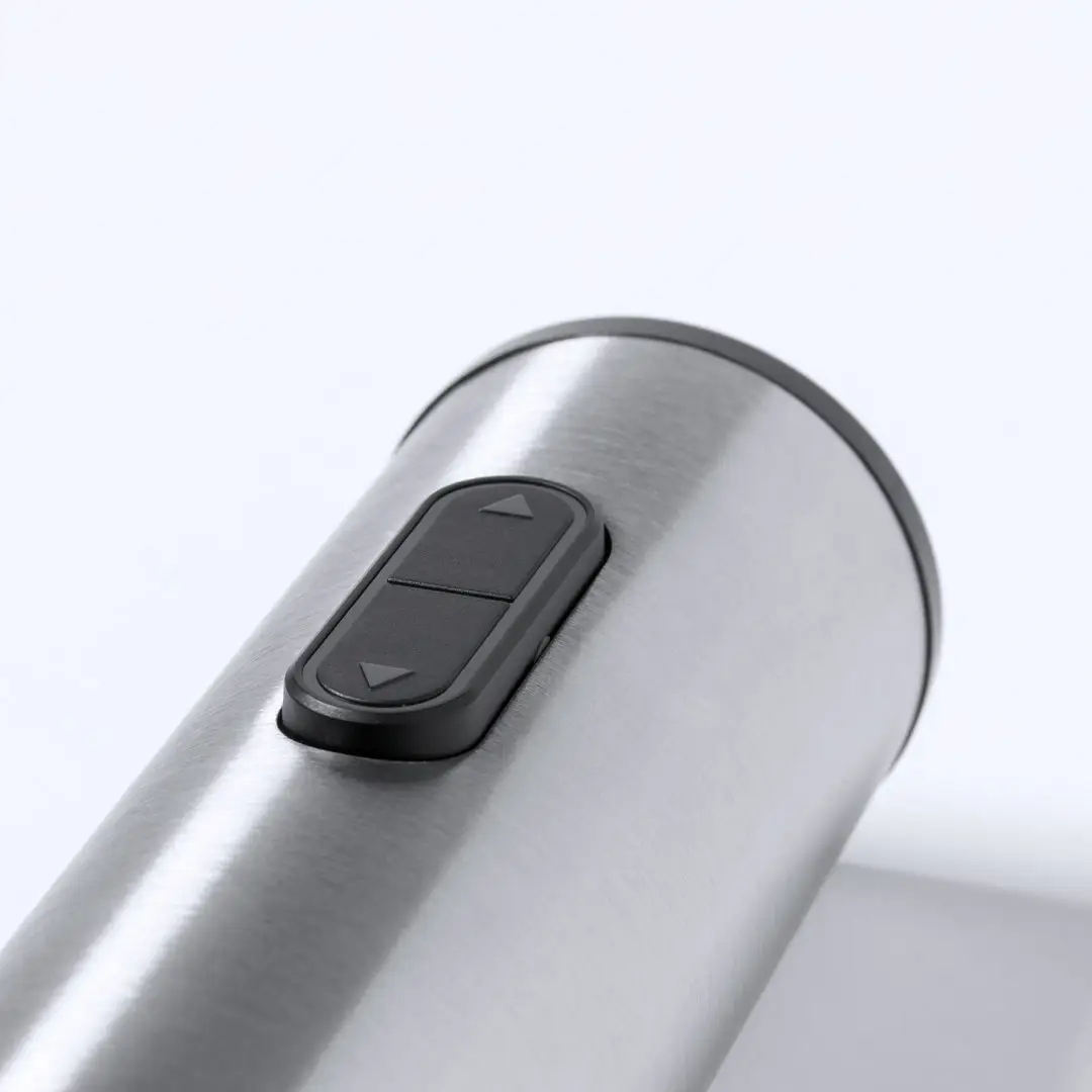 Sacacorchos eléctrico fabricado en acero inox y resistente ABS, con cortacápsulas incluido. Presentado en caja individual de diseño, con manual de instrucciones en español e inglés. Alimentación a pilas (4xAA no incluidas).