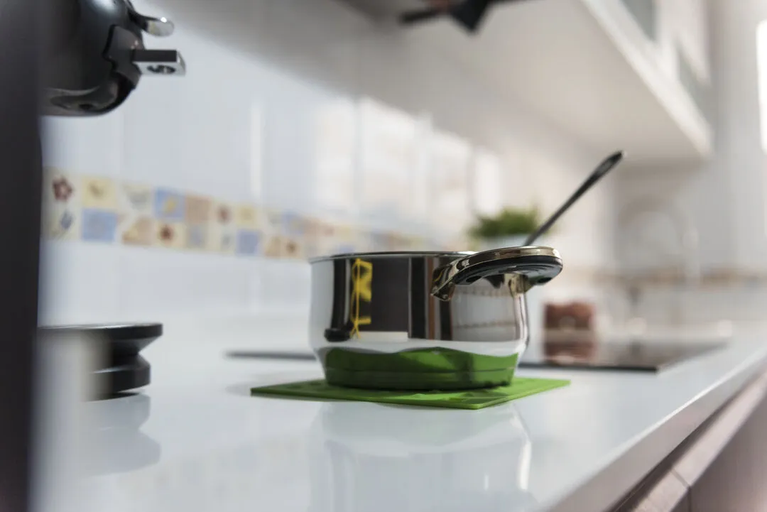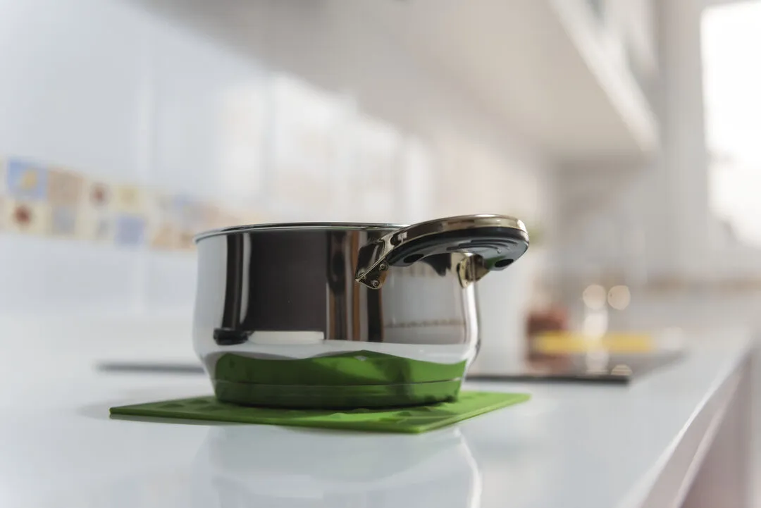 Salvamantel en flexible silicona de vivos colores con superficie reforzada antideslizante y troquelado para colgar.