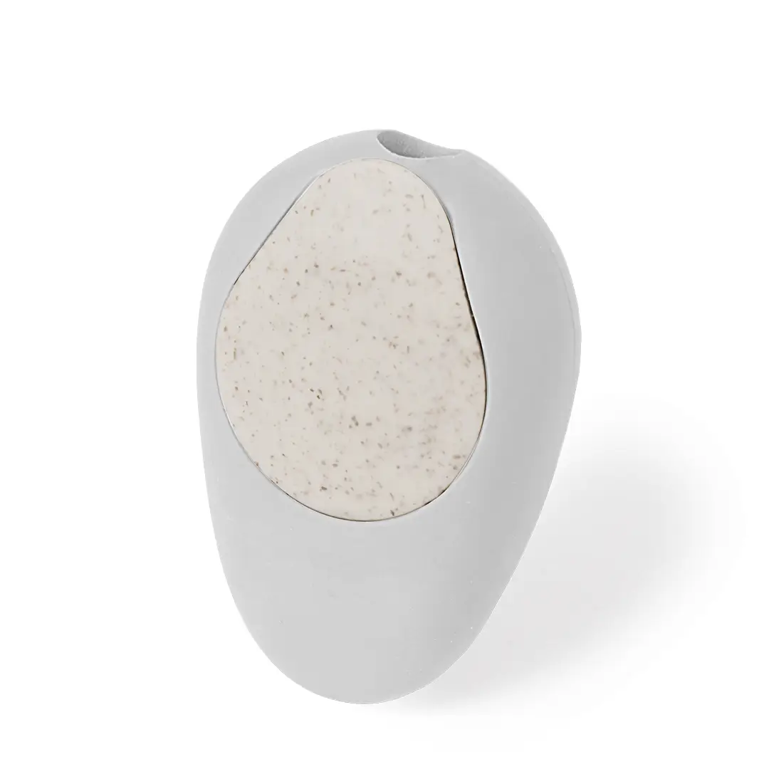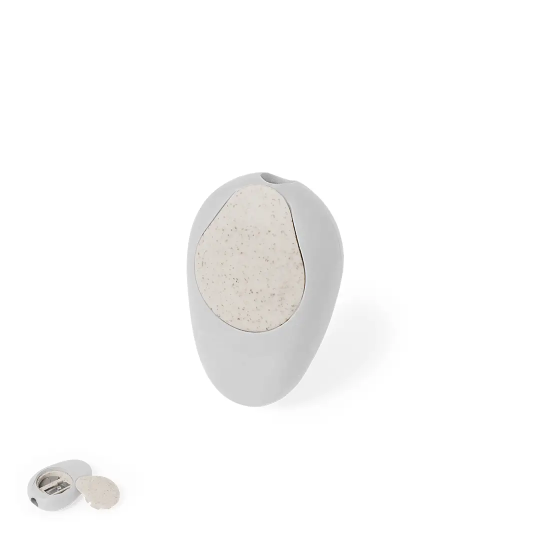 Original sacapuntas fabricado en caña de trigo. Práctico sacapuntas de bolsillo de inspiración natural por su forma de piedra pulida con práctica tapadera fabricada en fibra de trigo, cómodo de usar y guardar. La caña de trigo fomenta la utilización de materias primas naturales, reduciendo así las emisiones contaminantes.
