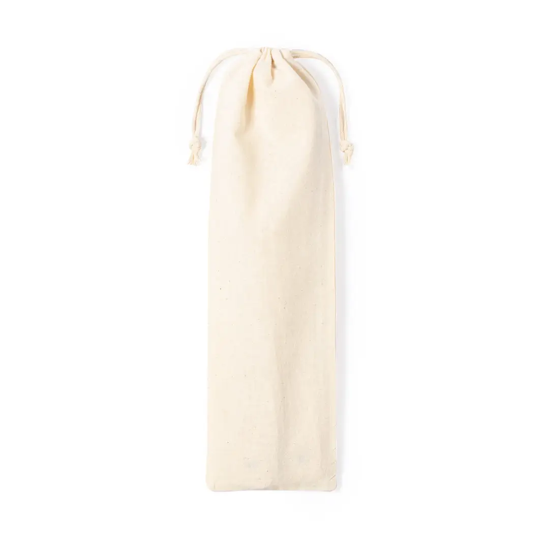 Set para ensalada con 2 utensilios fabricados en resistente bambú. Presentación en funda de algodón natural con cordón de cierre.