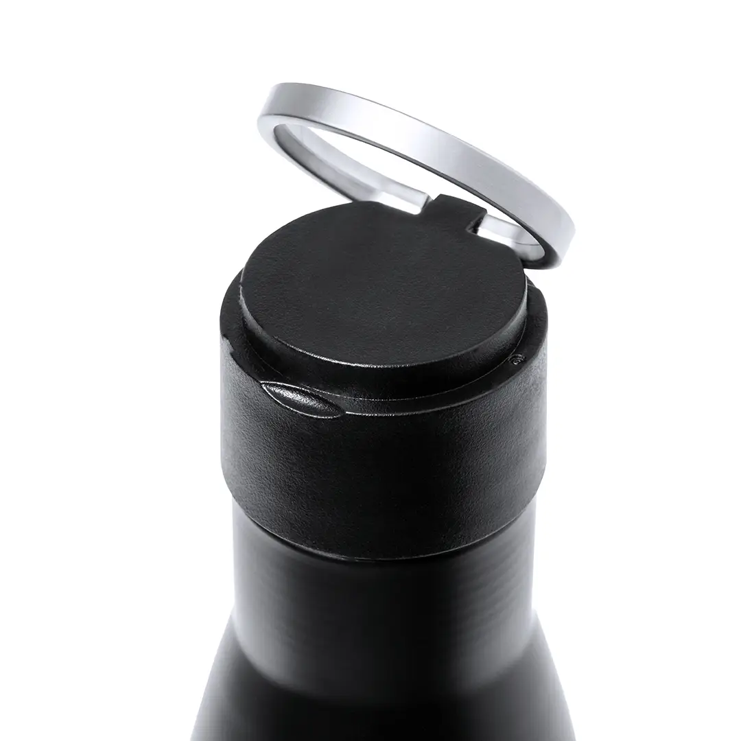 Elegante set premium que incluye:Termo de doble capa en acero inoxidable reciclado de acabado negro mate y de 500 ml de capacidad, con asa rígida de metal color plata mate. Con distintivo acero inoxidableBloc de notas en RPET en elegante color negro, con detalle metálico especial para marcaje en láser. Incluye cierre elástico y marcapáginas de tela. Interior con 80 hojas de disposición a una raya. Con distintivo RPETParaguas plegable de color negro con 98cm de diámetro. En material pongee 190T RPET. De apertura manual, con sistema anti viento y varillas fibra de vidrio. Con funda de transporte y cintas a juego. Con etiqueta distintiva RPET.Bolígrafo en RPET de acabado negro mate, de mecanismo giratorio y tinta azul. El material RPET se elabora a partir de plástico reciclado, para así fomentar la reutilización de residuos plásticos y ayudar a la sostenibilidad del planeta. Set presentado en estuche individual de acabado mate, con troquelado interior para cada uno de los elementos del set.