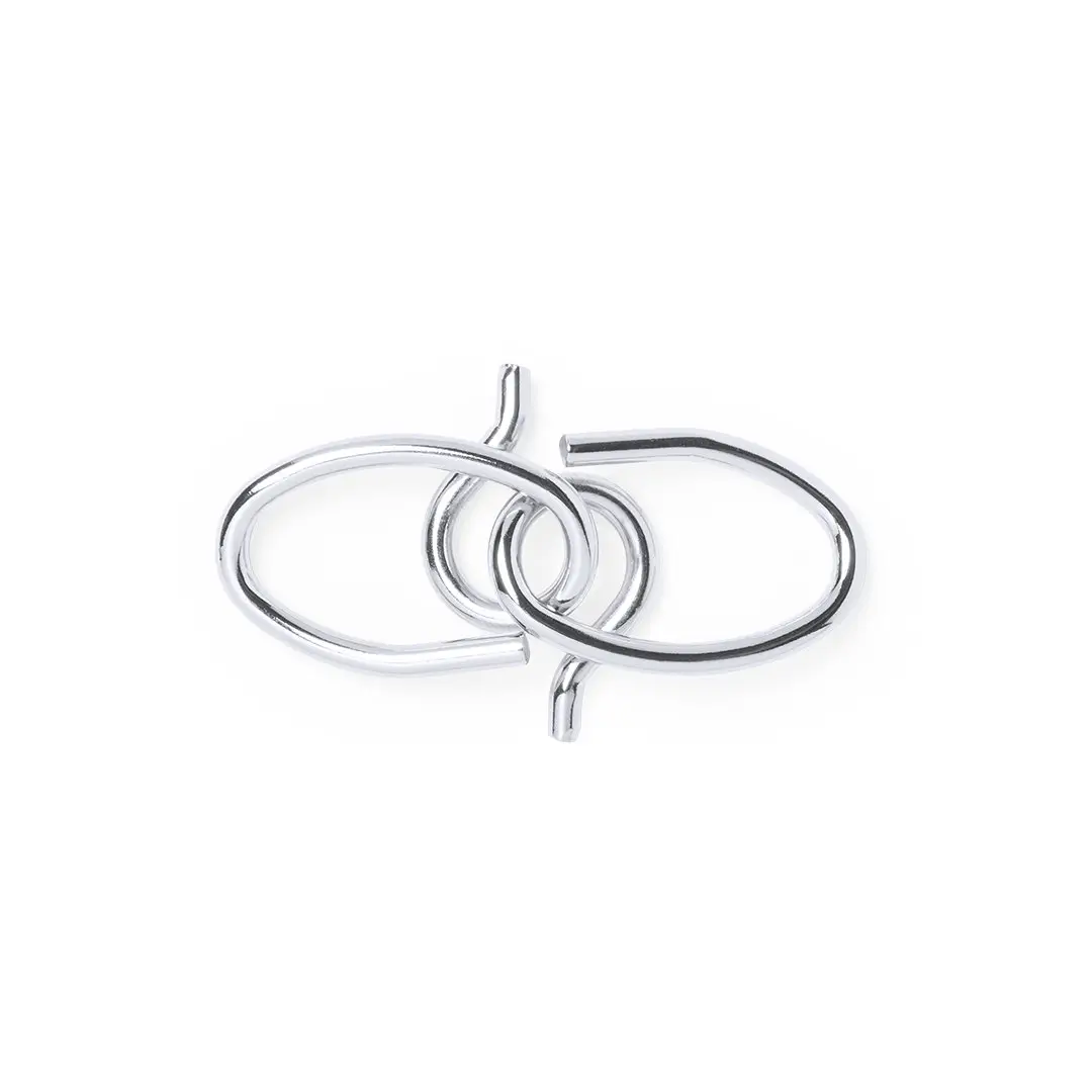 Set de 4 juegos de habilidad de acero inox para los jugadores más ingeniosos. Presentado en bolsita de color crudo con cordón de cierre auto ajustable.