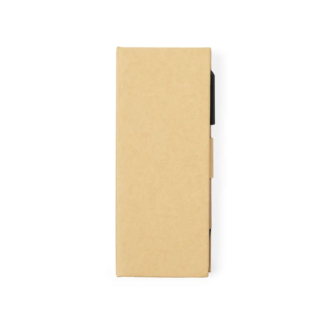 Práctico set de oficina hecho en cartón reciclado. Fácil de transportar gracias a su estuche hecho en cartón reciclado. Contenido: 110 notas adhesivas de 5x5cm en dos colores. 110 mininotas adhesivas en forma de flecha de 1,5x5cm en 5 llamativos colores. Regla de 12cmBolígrafo de cartón reciclado con tinta azul. Set presentado en bolsa individual de papel reciclada. El cartón reciclado proviene del reaprovechamiento de excedente de fabricaciones y reciclaje de papel en el final de su vida útil, convirtiéndose en un lienzo ecológico y sostenible.