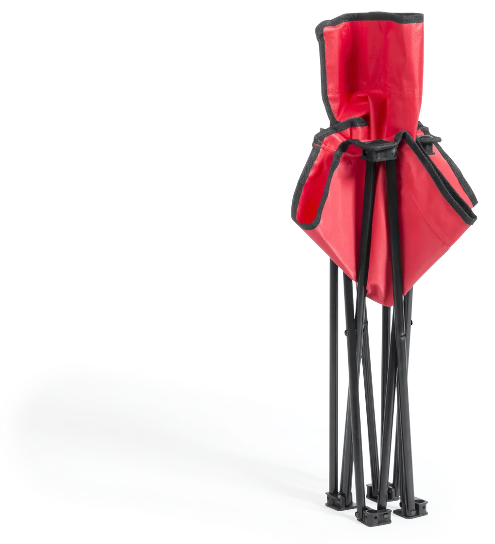 Silla plegable con resistente cuerpo de aluminio tubular. En resistente poliéster 600D en variada gama de vivos colores. Con costuras reforzadas, refuerzos de goma antideslizantes en las patas y presentada en funda individual con cordón auto cierre, accesorio de ajuste y cinta para hombro.