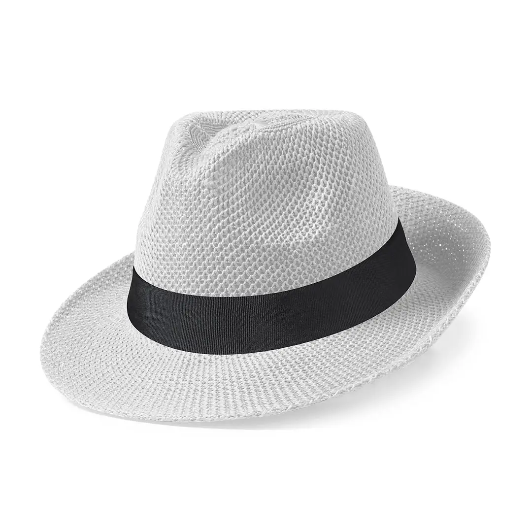Sombrero de alta calidad en material sintético de sobrios colores con confortable cinta interior a juego.