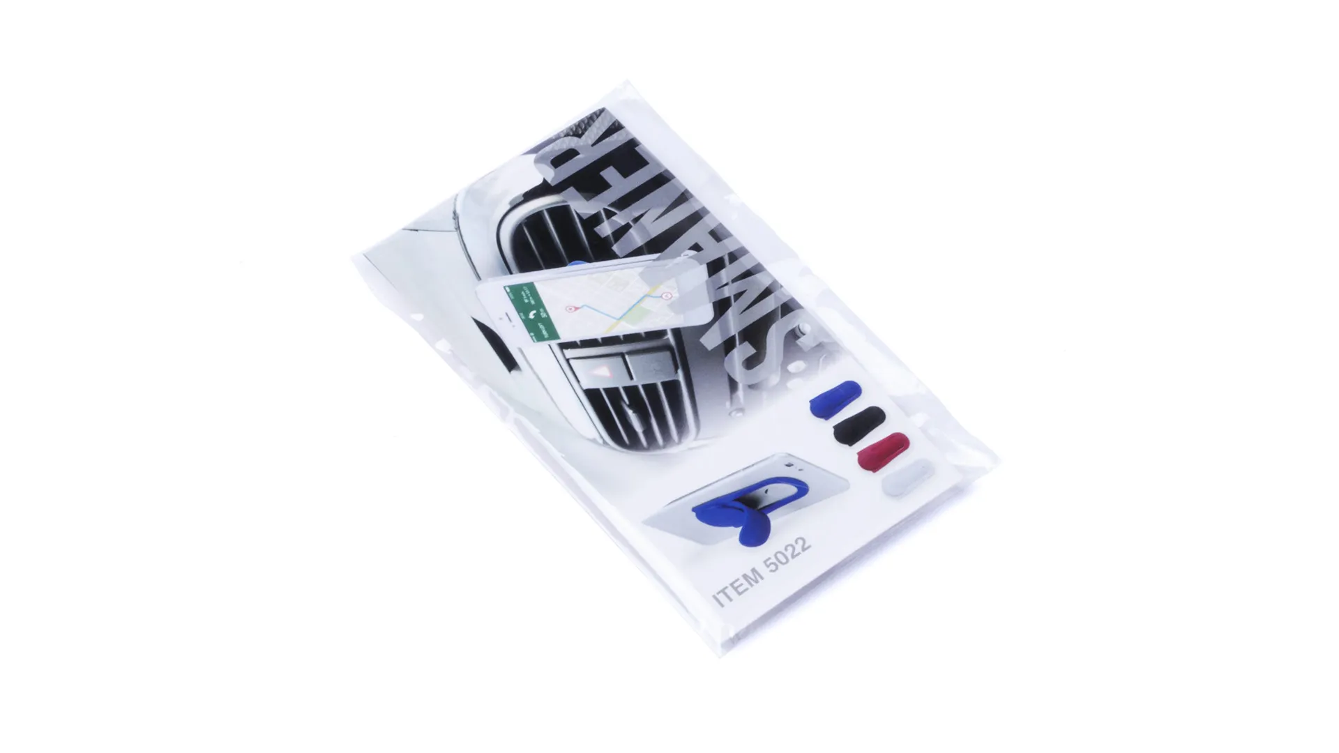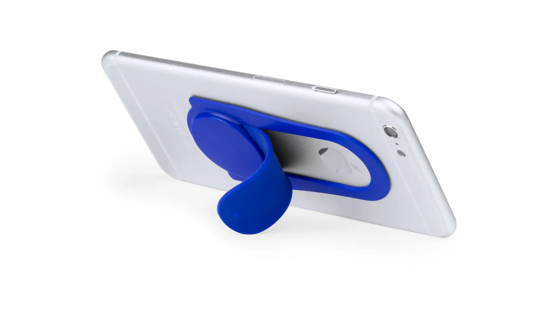 Soporte de suave silicona para dispositivo móvil. Original diseño en llamativos colores y sistema de fijación mediante ventosa, mecanismo desplegable y presentado en atractiva bolsa de diseño.