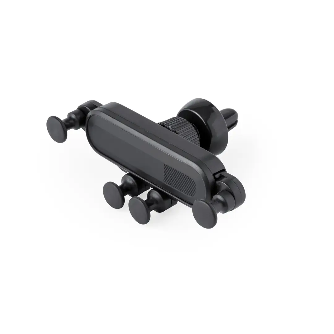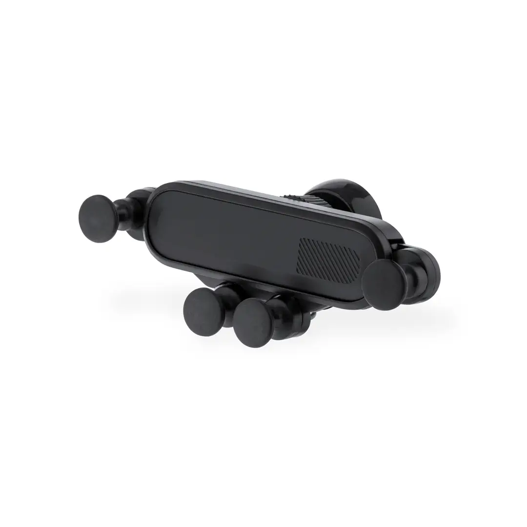 Ingenioso soporte para smartphone de diseño minimalista y especialmente diseñado para smartphones tamaño XXL. Con sistema de fijación universal que se adapta con el propio peso del teléfono, ajustando los enganches de agarre una vez se sitúa el dispositivo en el soporte. Para rejilla de ventilación del automóvil y con frontal especialmente diseñado para marcaje. Presentado en caja de diseño kraft.