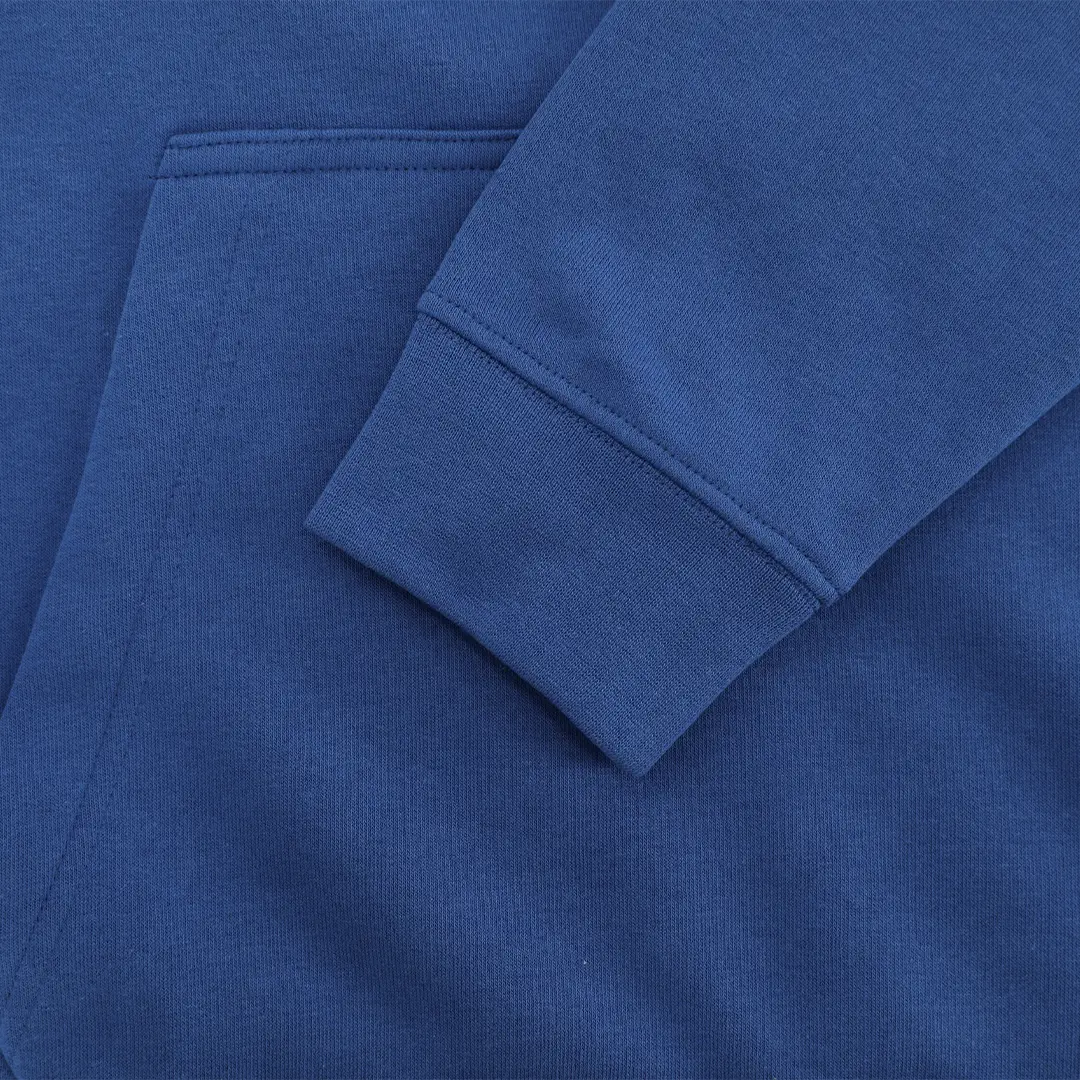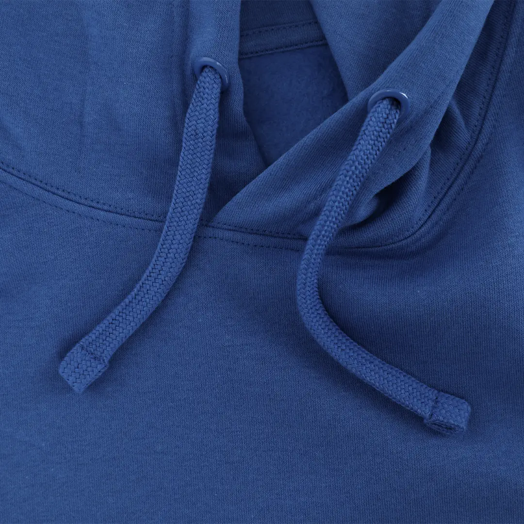 Sudadera con capucha forrada a tono de doble tejido. Confeccionada en algodón y poliester en suave felpa perchada de 280 g/m2. Con Bolsillo tipo canguro. Cordón ajustable y ojales metálicos a tono. Cubrecosturas en el cuello. Puños y la cintura en punto canalé 1×1 con elastano para mayor ajuste y confort.